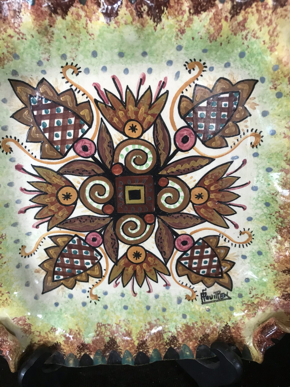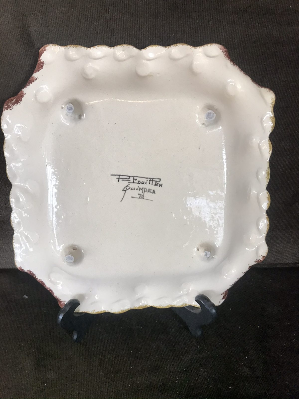 / Assiette carrée P.Fouillen, Quimper de 1950