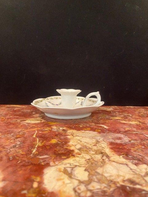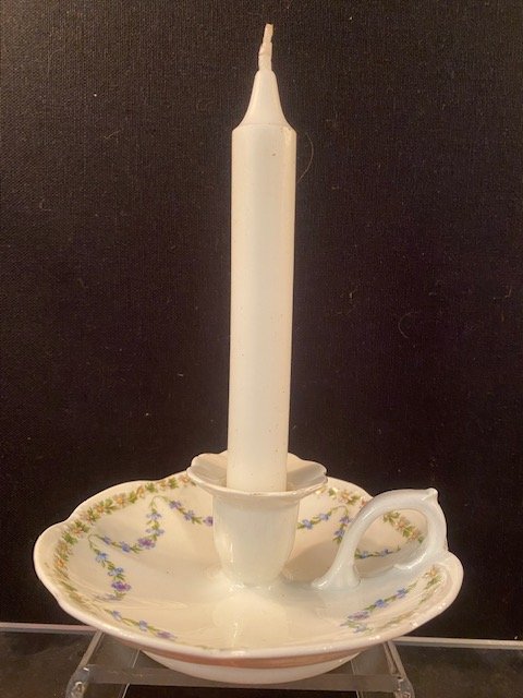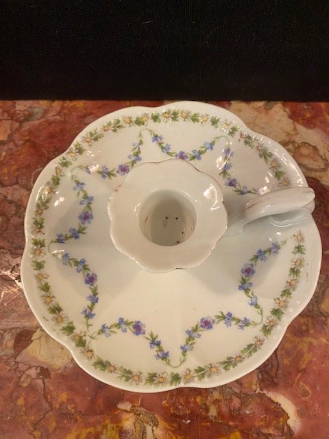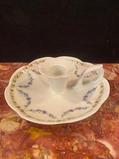 / Bougeoir à décor guirlande de fleurs, H5 x D14