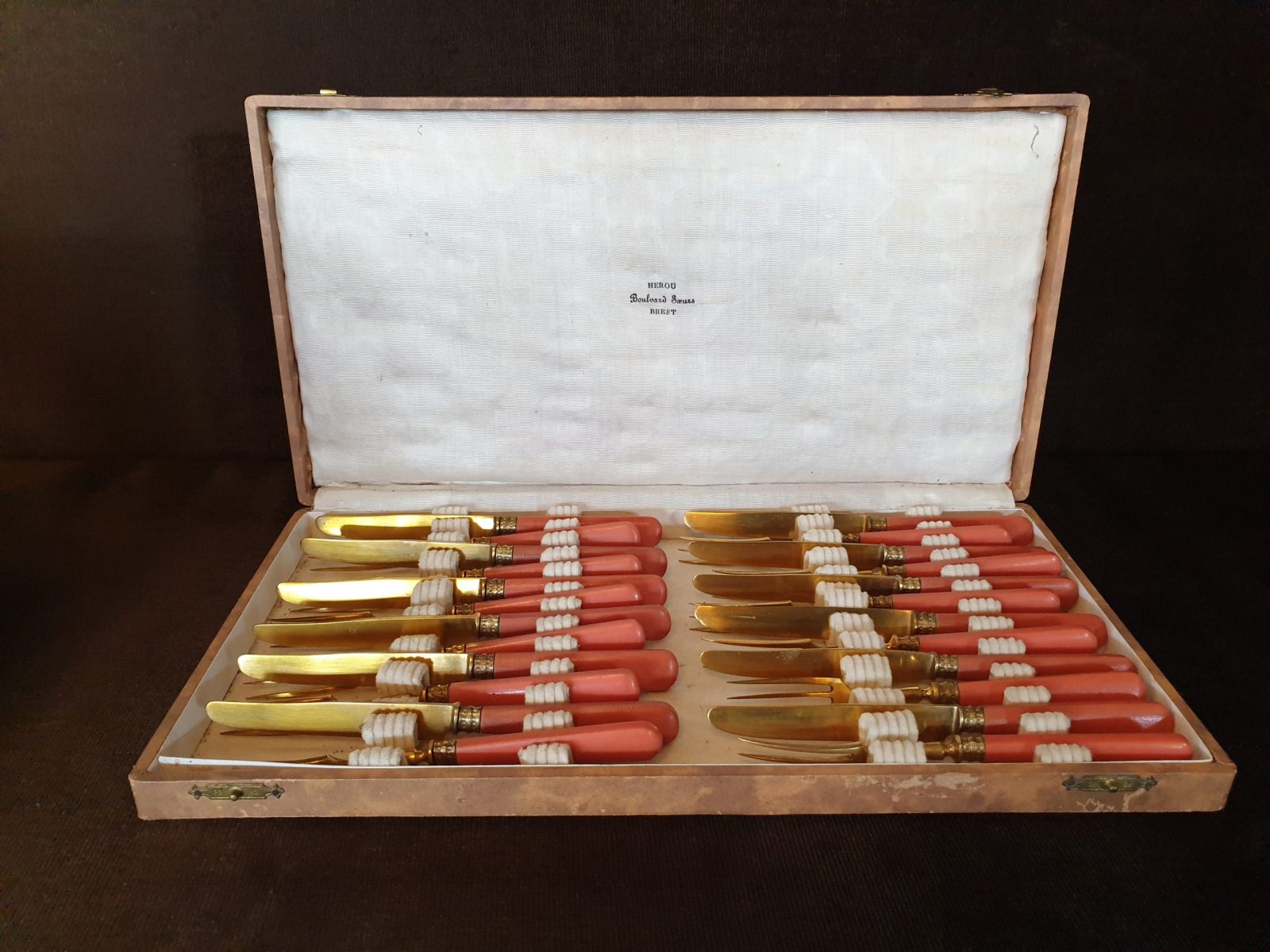 Coffret Herou, Boulevard Sœurs Brest, 12 couverts à dessert en cuivre
