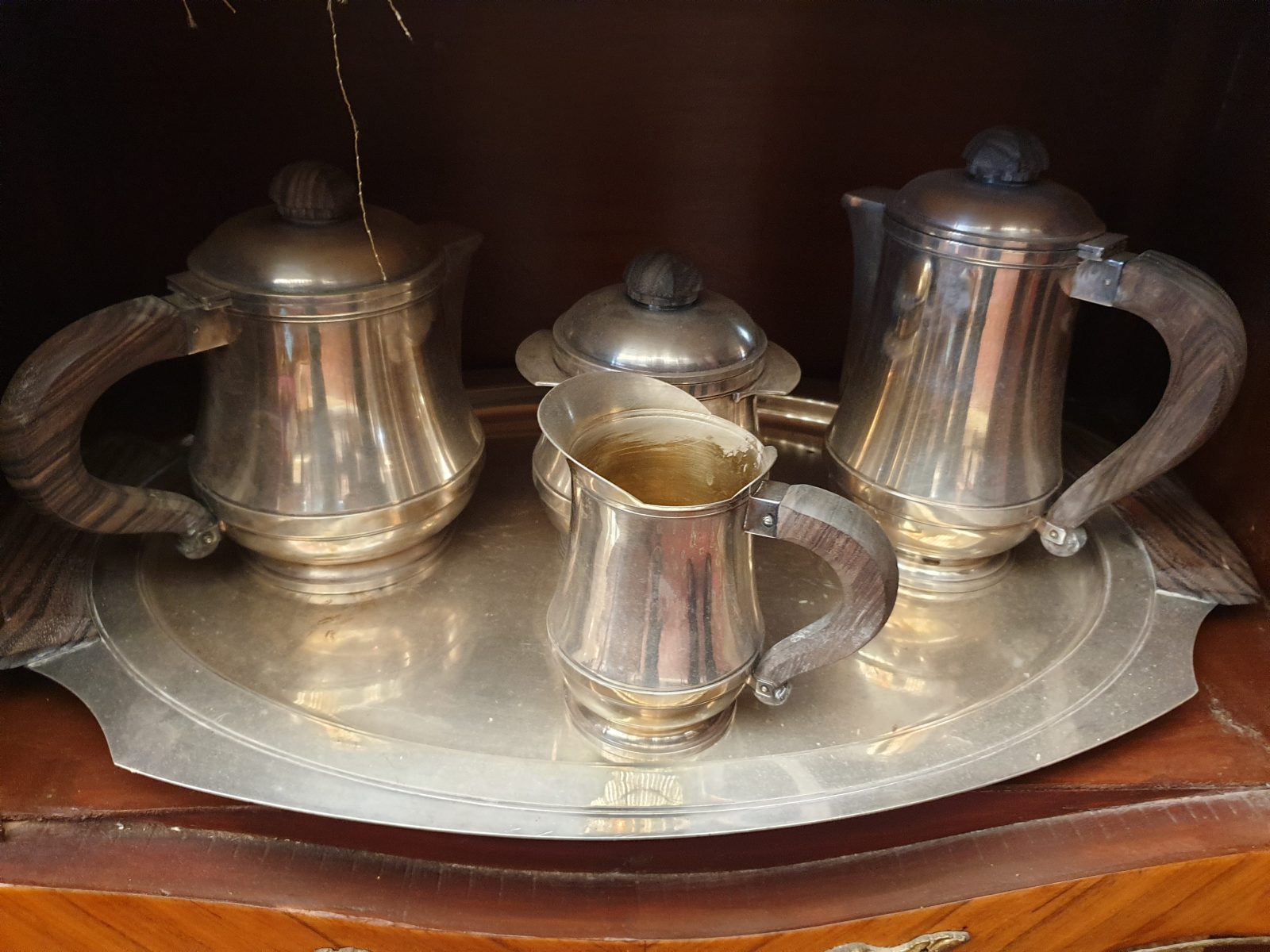 Ensemble de café sur plateau poignées macassar 1930
