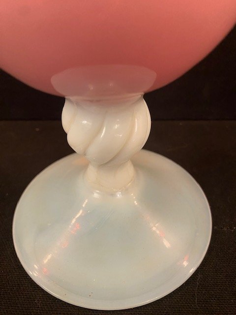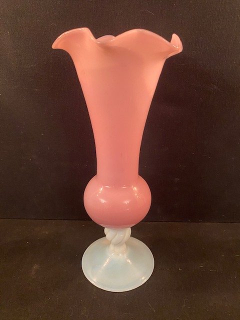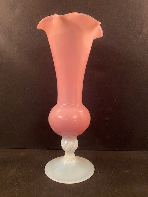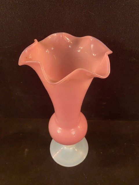 / 53-Vase en opaline blanche et rose, H30 x D13,5, Prix 30€