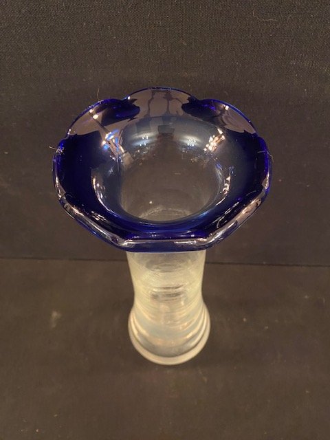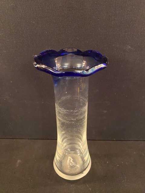 57-Vase en verre bleu, H24 x D10,5, Prix 15€
