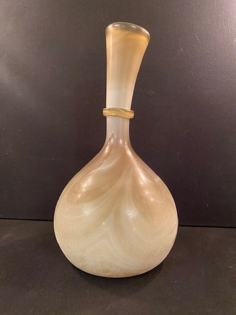 / 63-Vase en verre soufflé beige, poinçonné, H30 x D17, Prix 50€