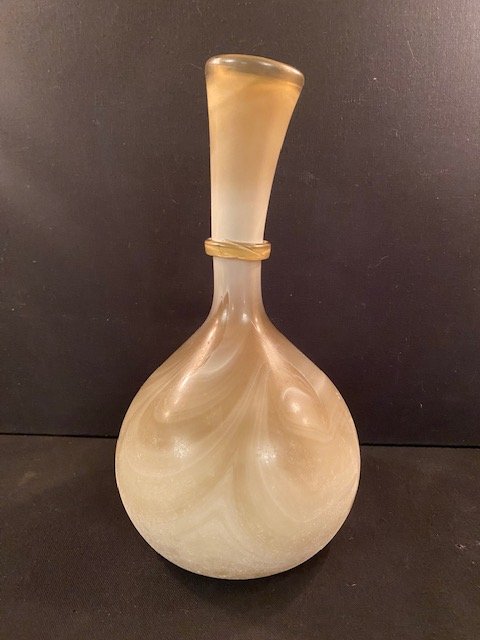 63-Vase en verre soufflé beige, poinçonné, H30 x D17, Prix 50€