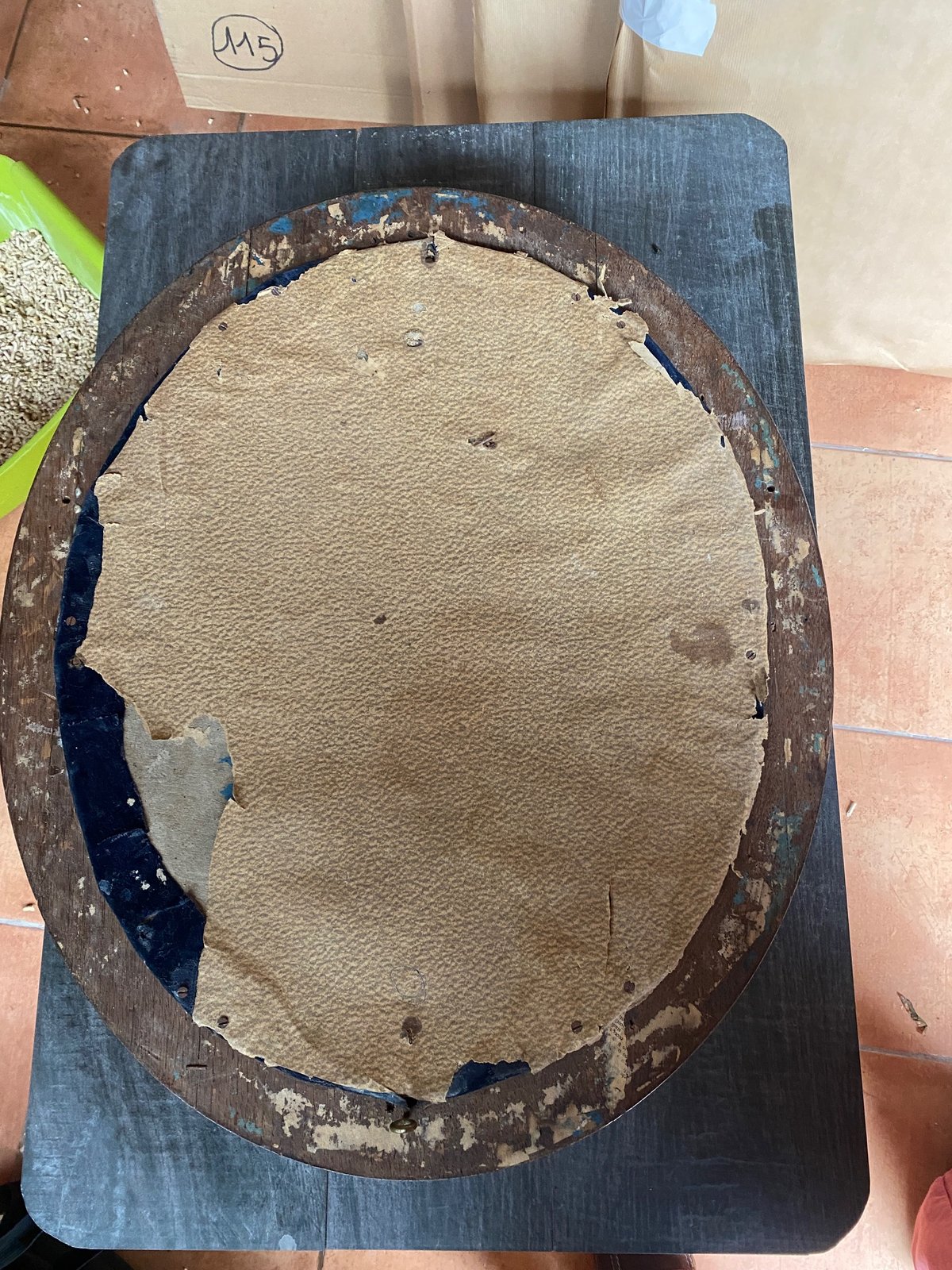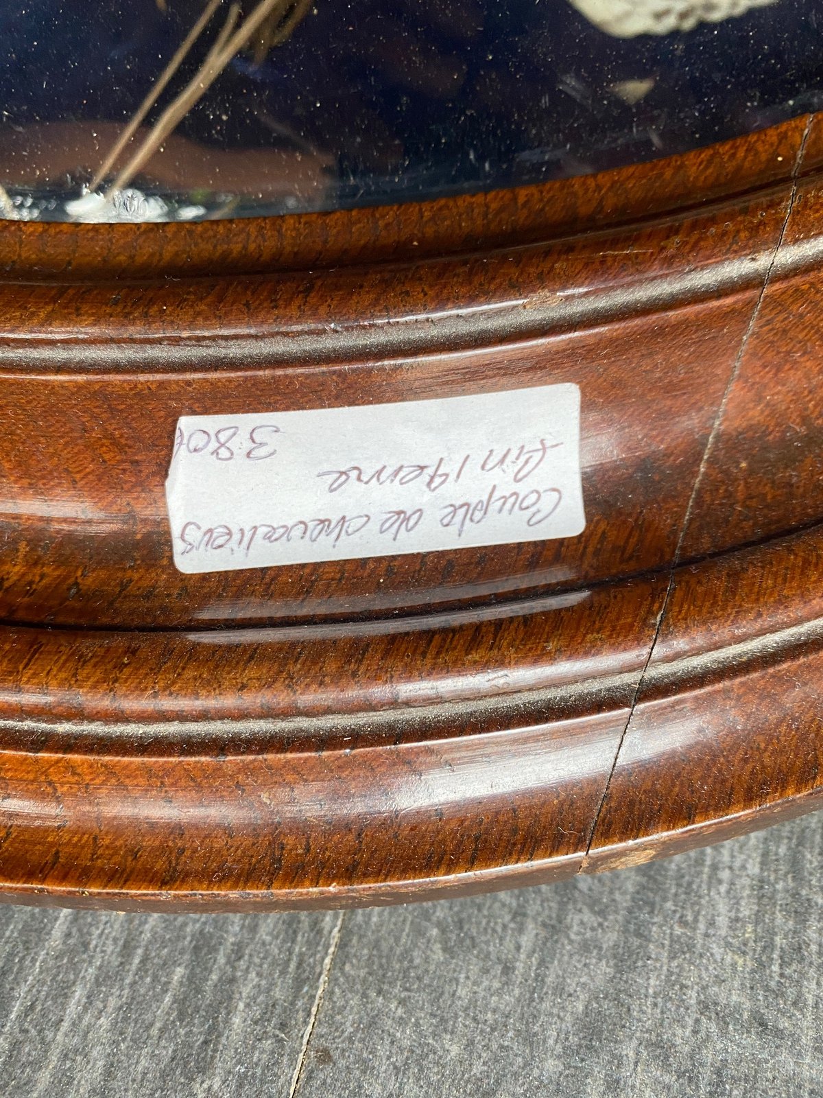 Tableau paire de Chevaliers fin 19eme dans cadre ovale, vitre bombée, une manqante, H60 x L50, cadre épaisseur 7