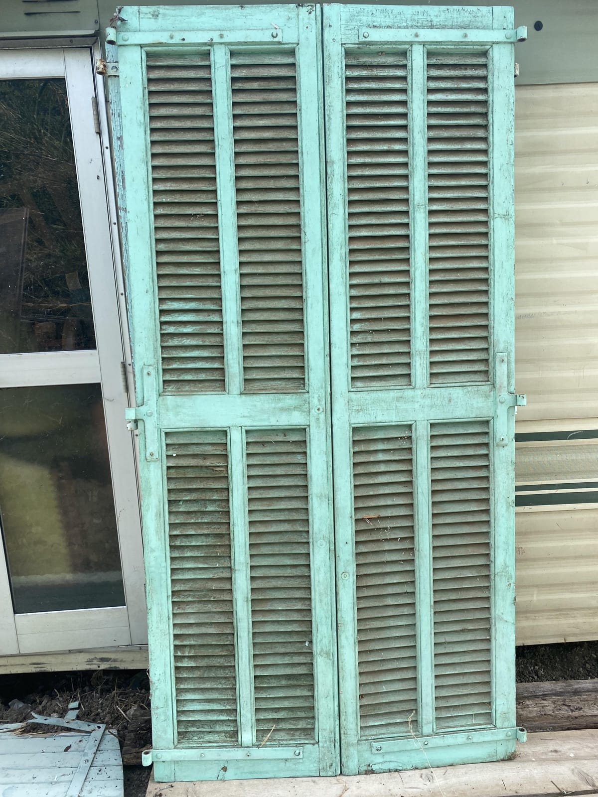 1 Paire de grand volets niçois en bois à lames, couleur turquoise H207 x L103