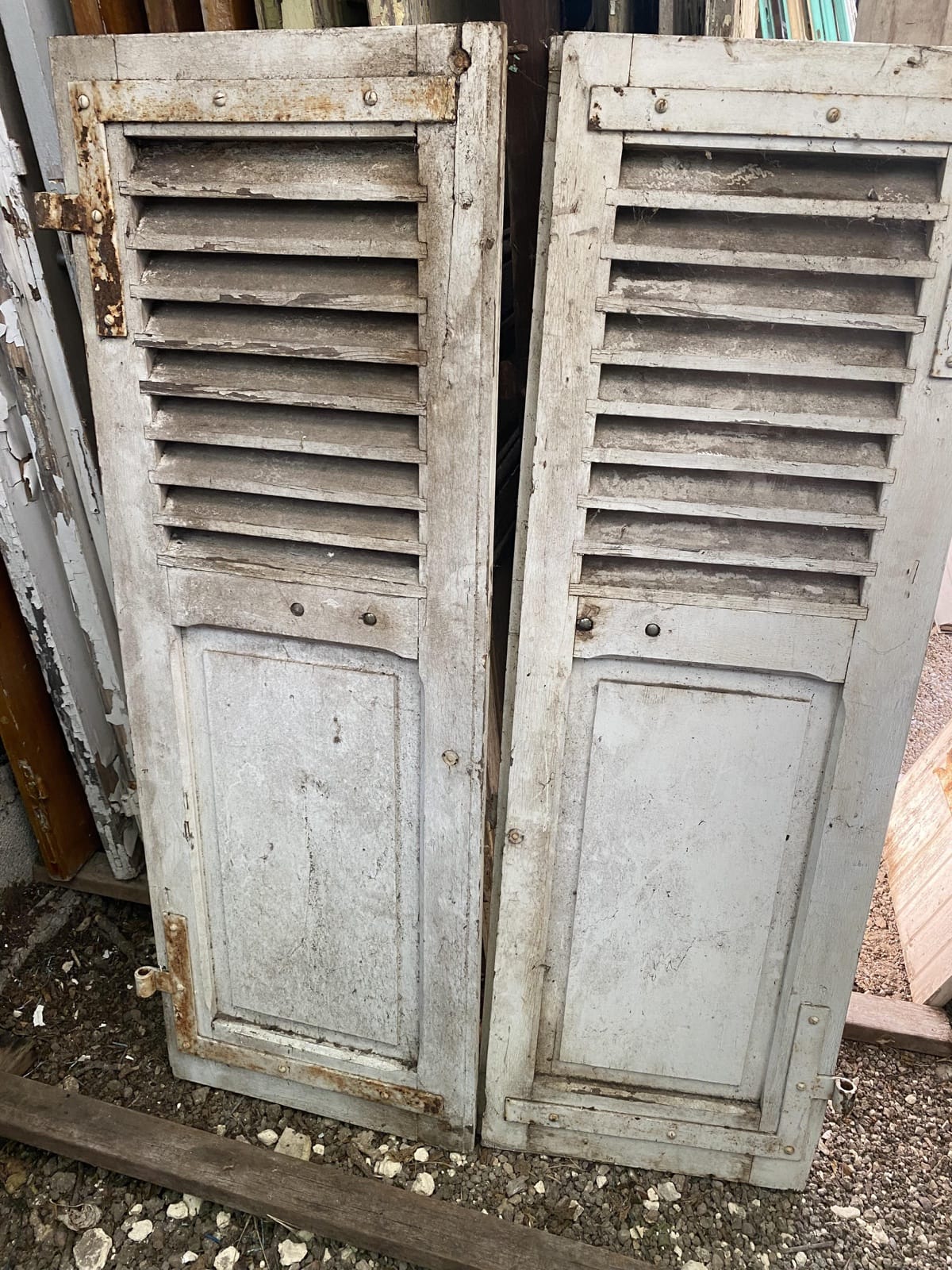 2 Paires de petit volets blanch en bois, lames americaine sur partie haute H134 x L91