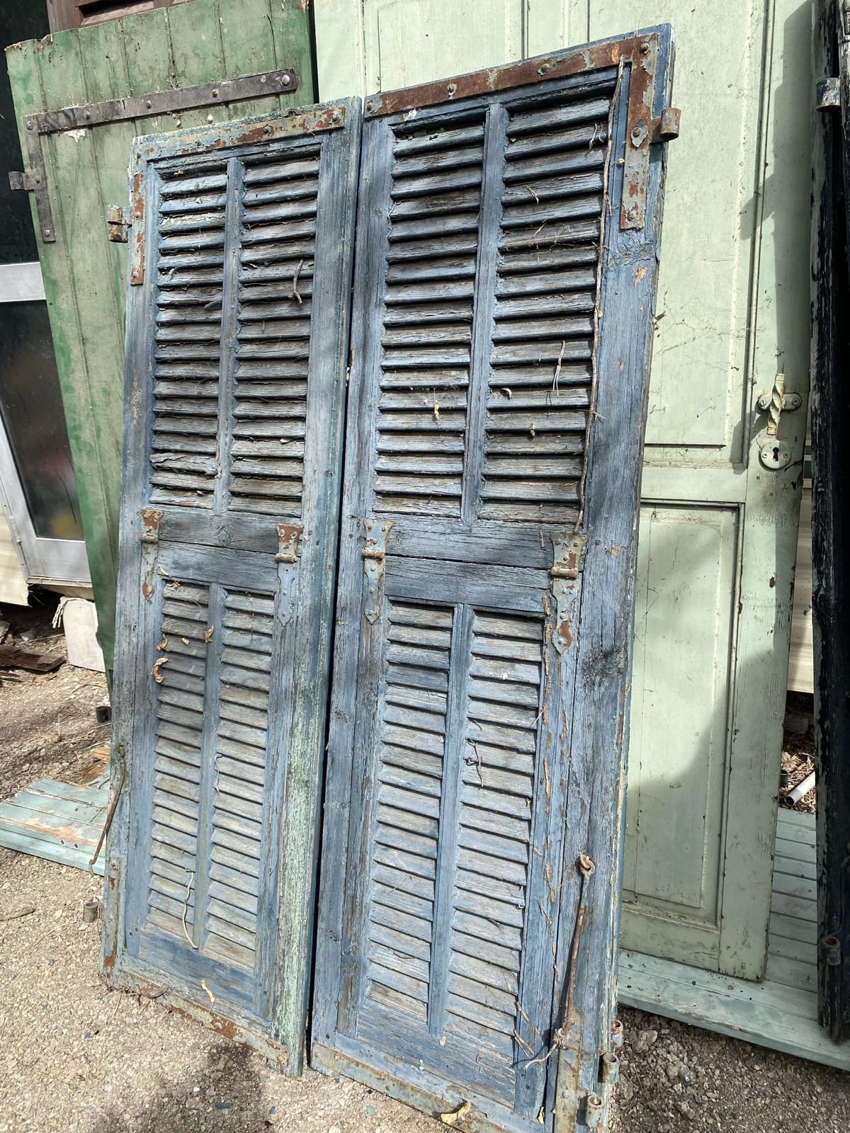 3 Paires de volets en bois lames à la francaise, à battants perciennes peint vert foncé, tous abimés H156 x L94