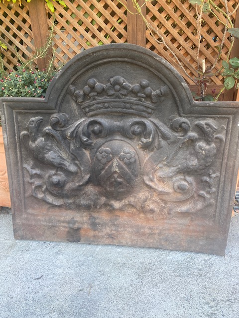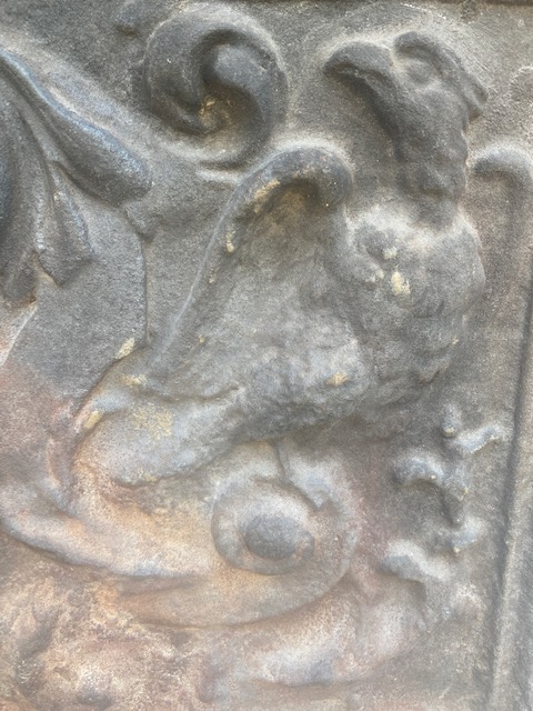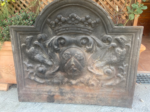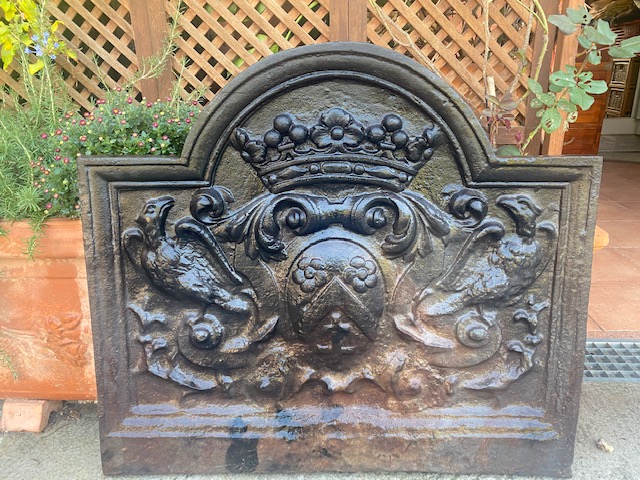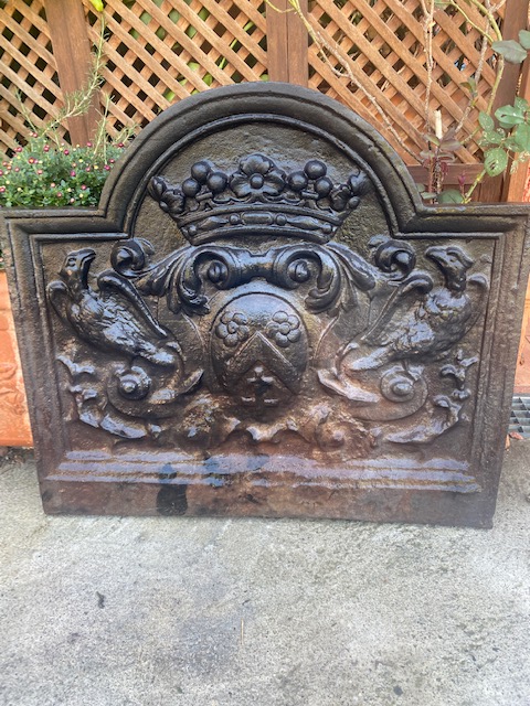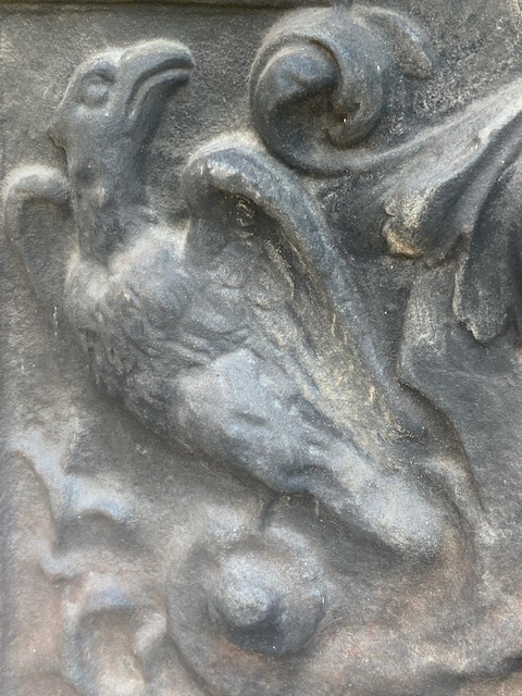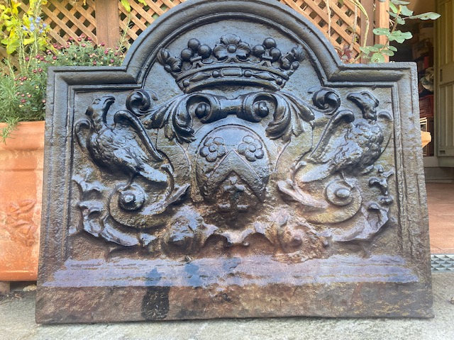 Plaque de cheminée en fonte à décor d’aigles et couronne