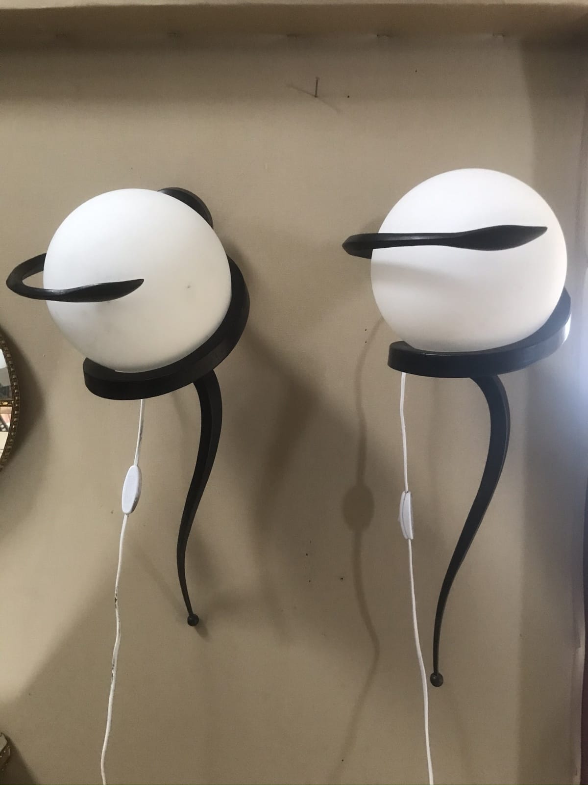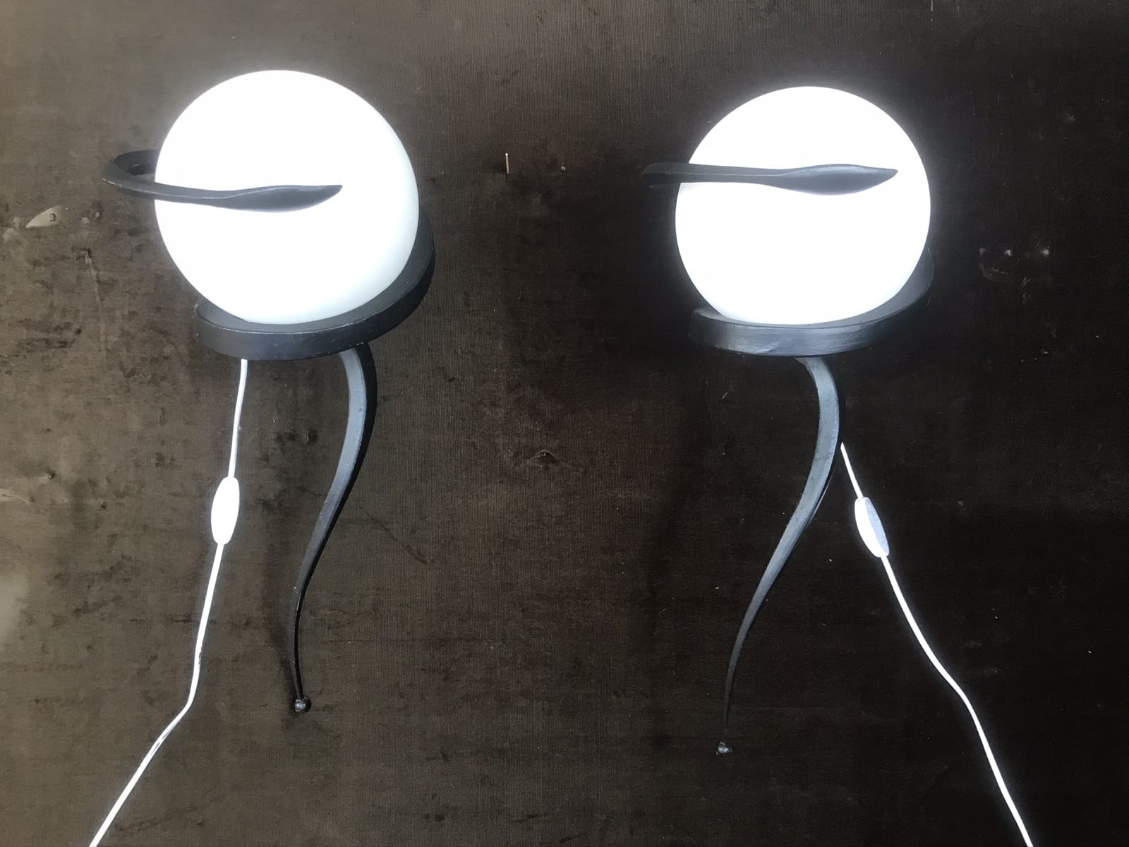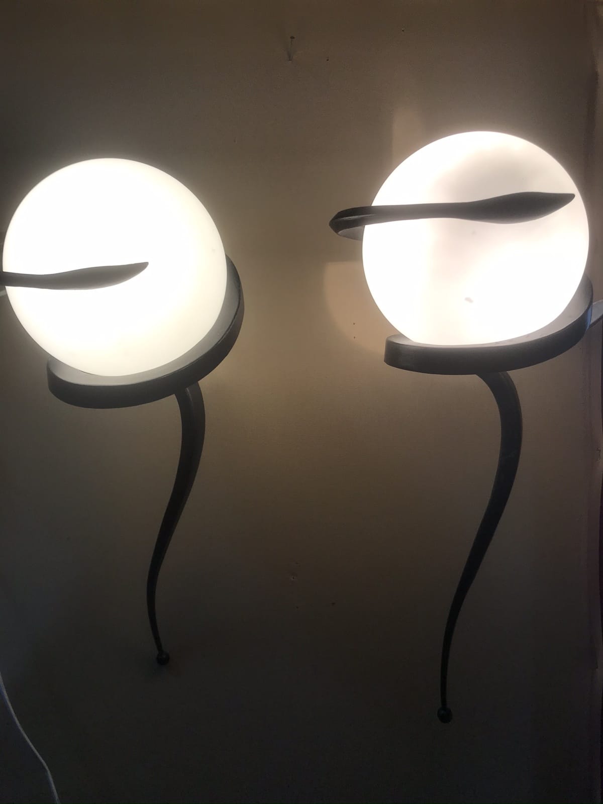 Paire d’appliques contemporaines en metal – forme serpent – et globe verre rond – electrifier – H60 x L20 x P34