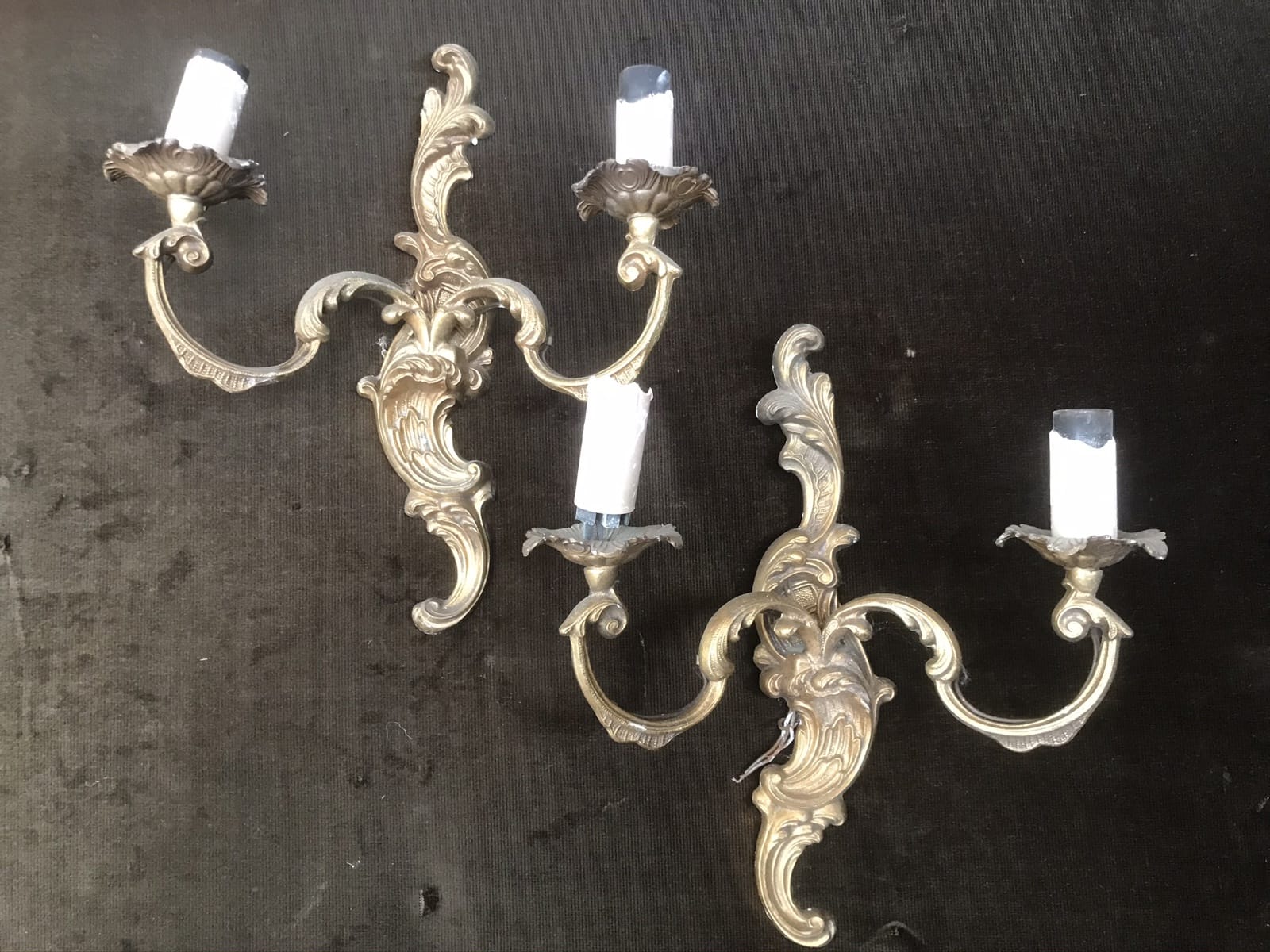 Paire d’appliques style rocaille – bronze doré – electrifier – H30 x L27 x P12