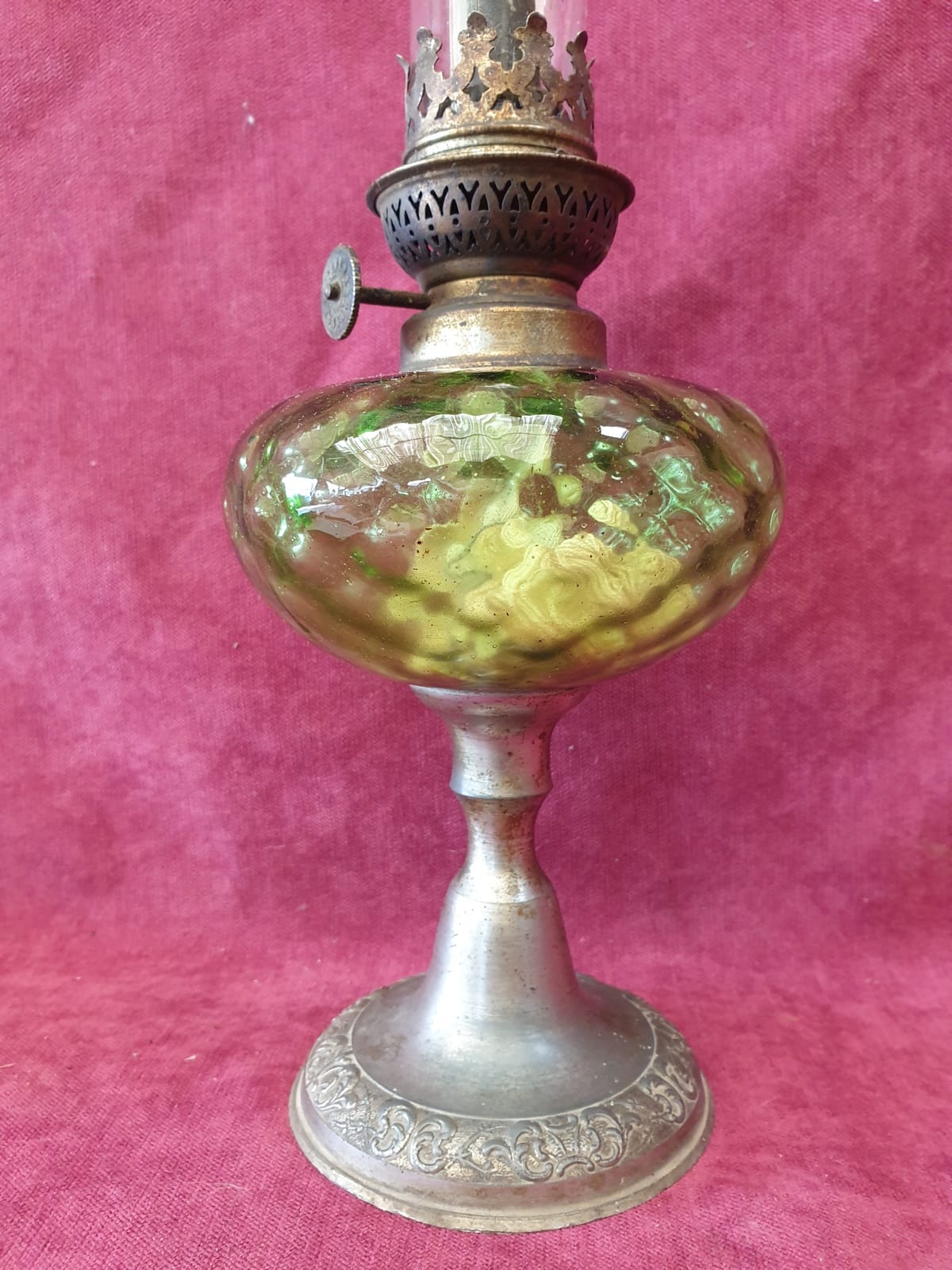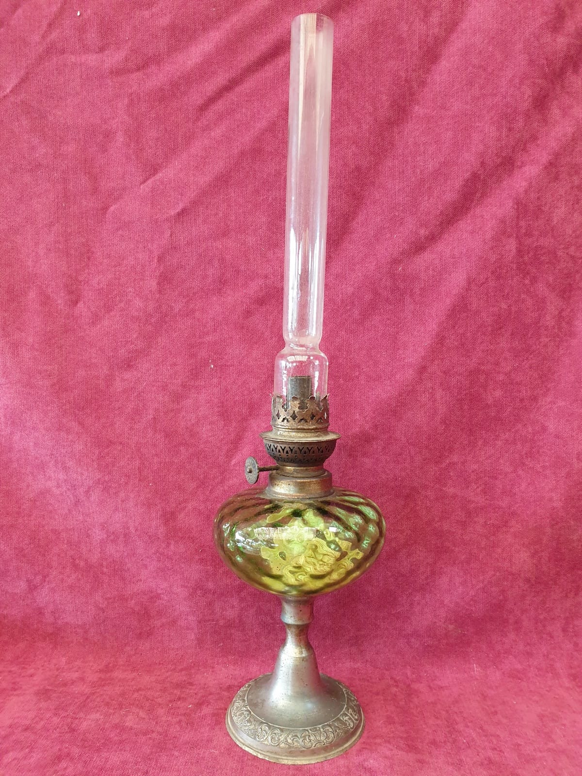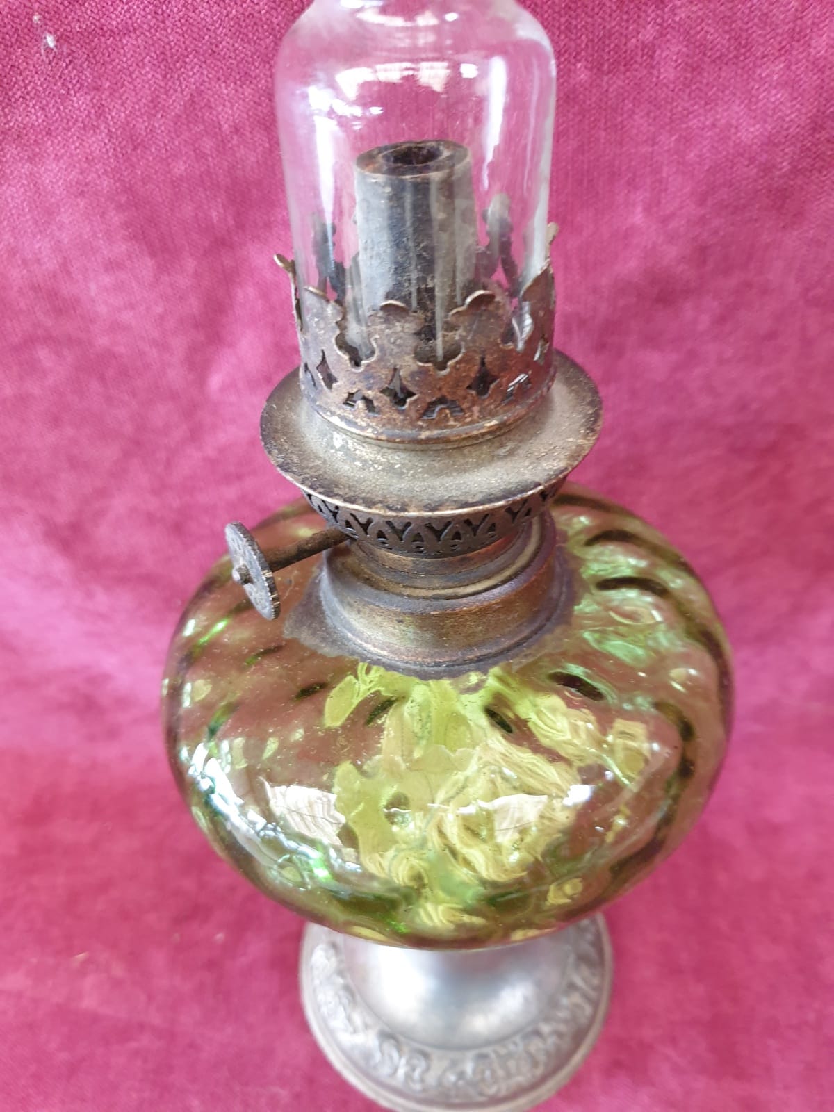 / Lampe a huile verre vert avec flute