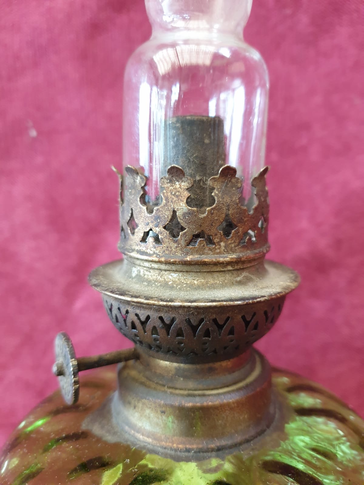 Lampe a huile verre vert avec flute