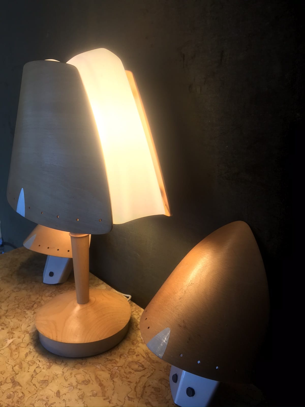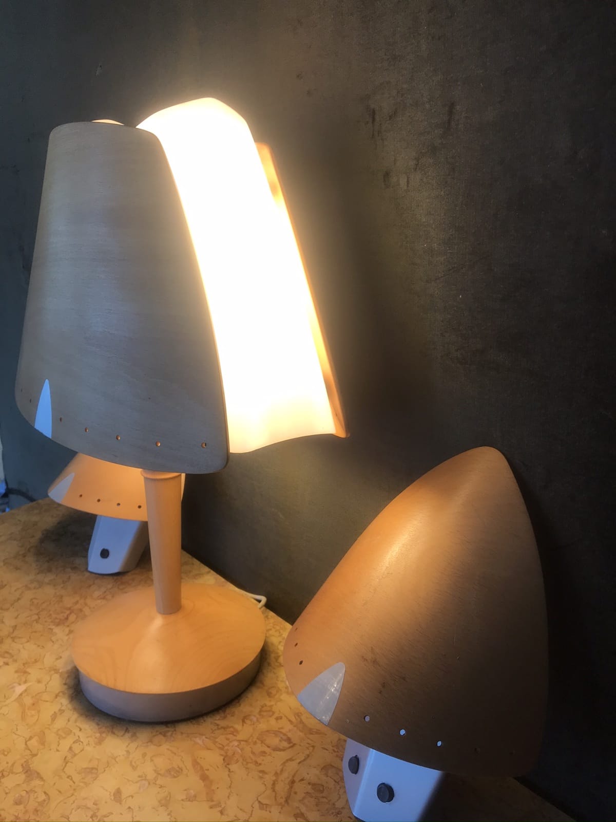 Lampe sur pied de bureau contemporain – marque LUCID – en hêtre blond – H64 x L50 x P23