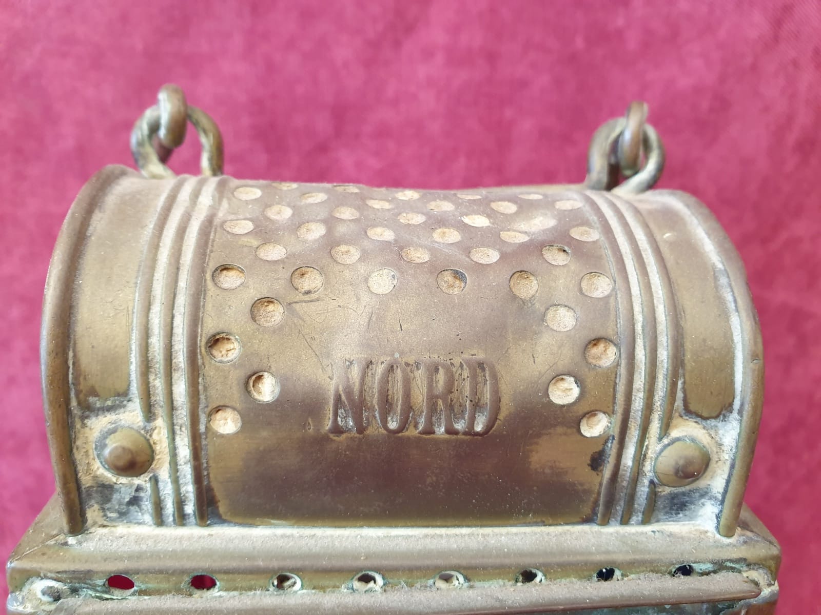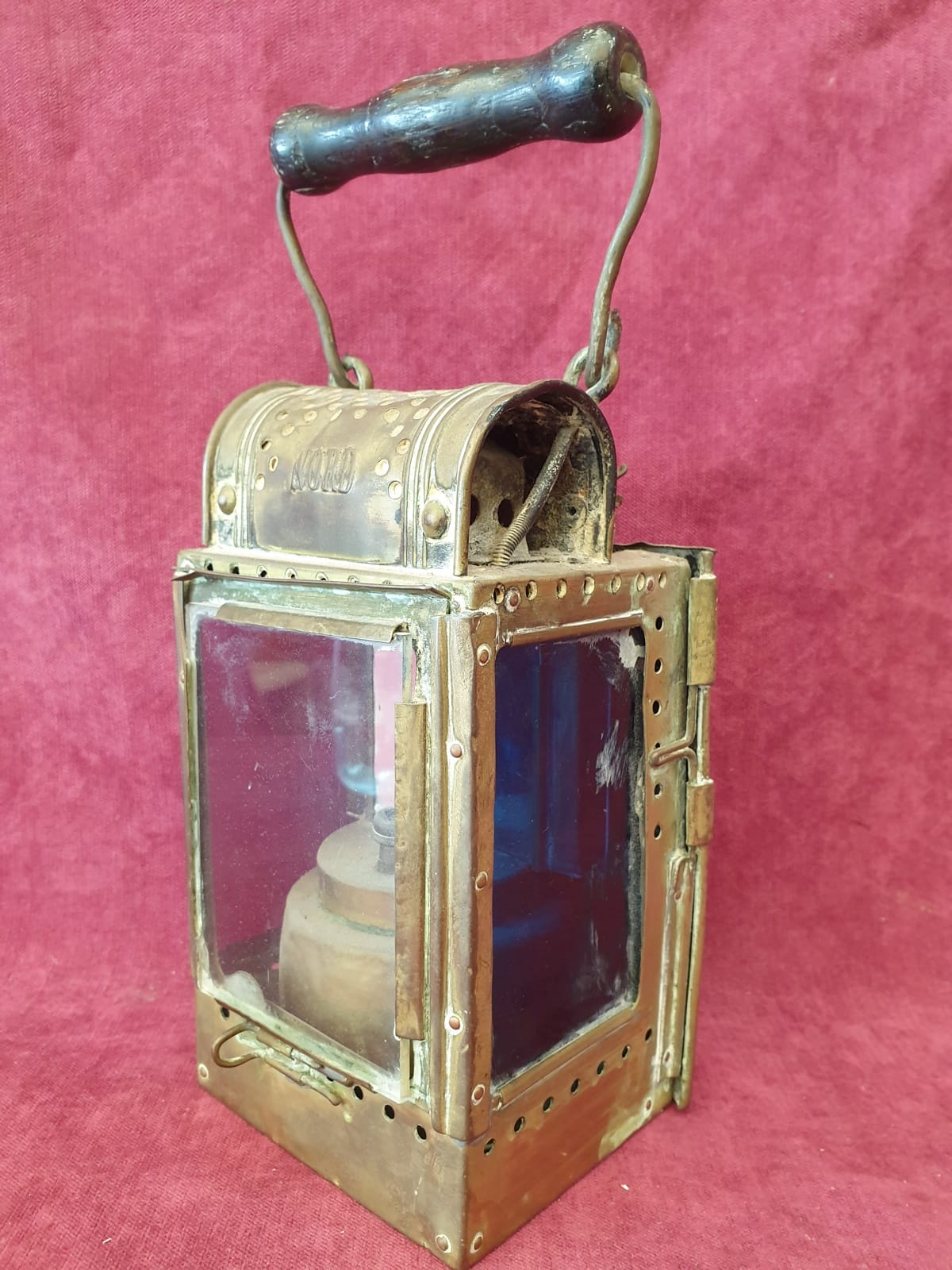 Lampe a petrol de train – marquer Nord et Pointage – verres rouge et bleu et miroir – H27.5 x L10.5 x P9.5