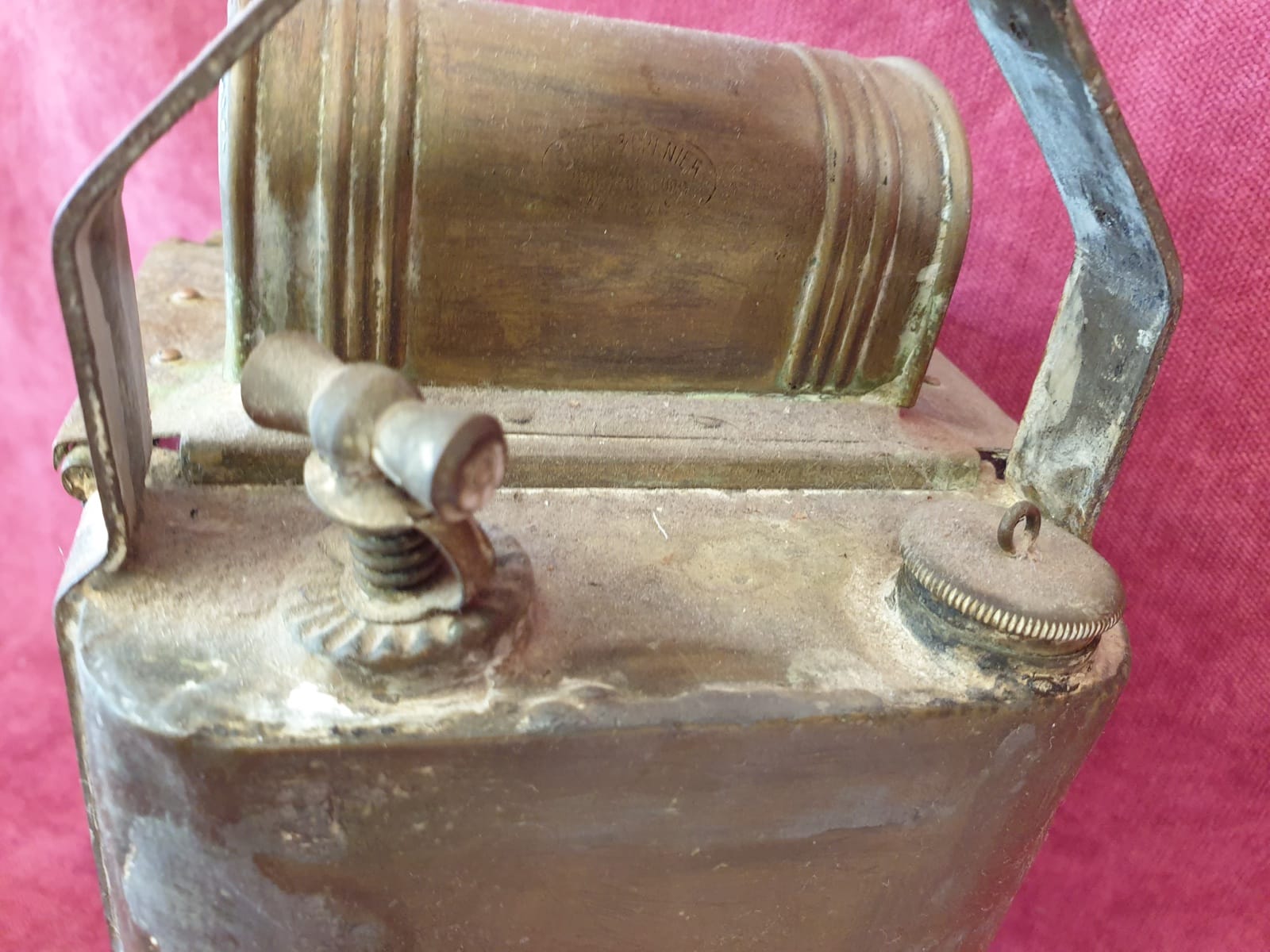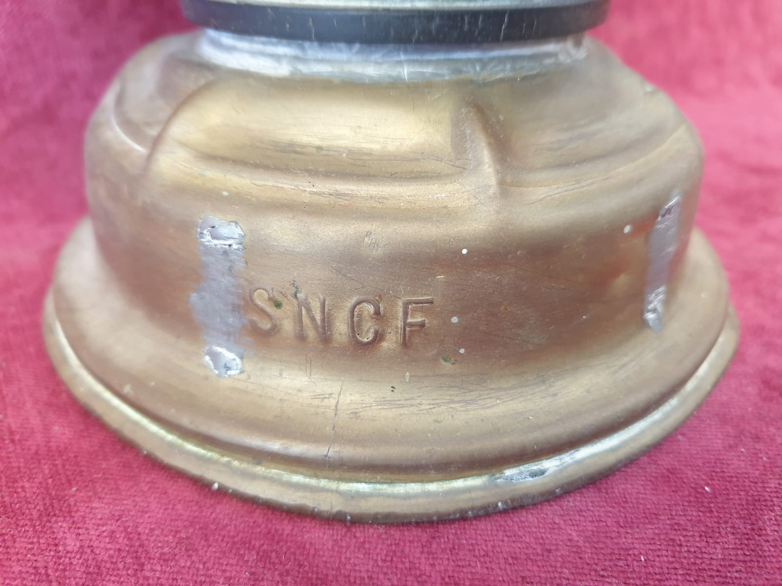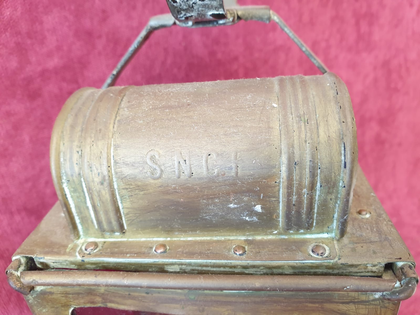 Lampe a petrol d’urgence SNCF – cuivre avec verres rouge et bleu et miroir – D15