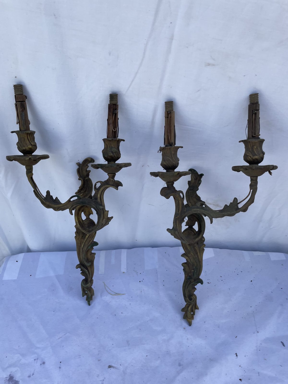 Paire d’appliques rocaille en bronze, H40 x L20 x P15
