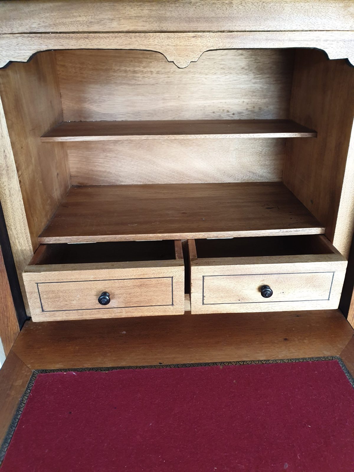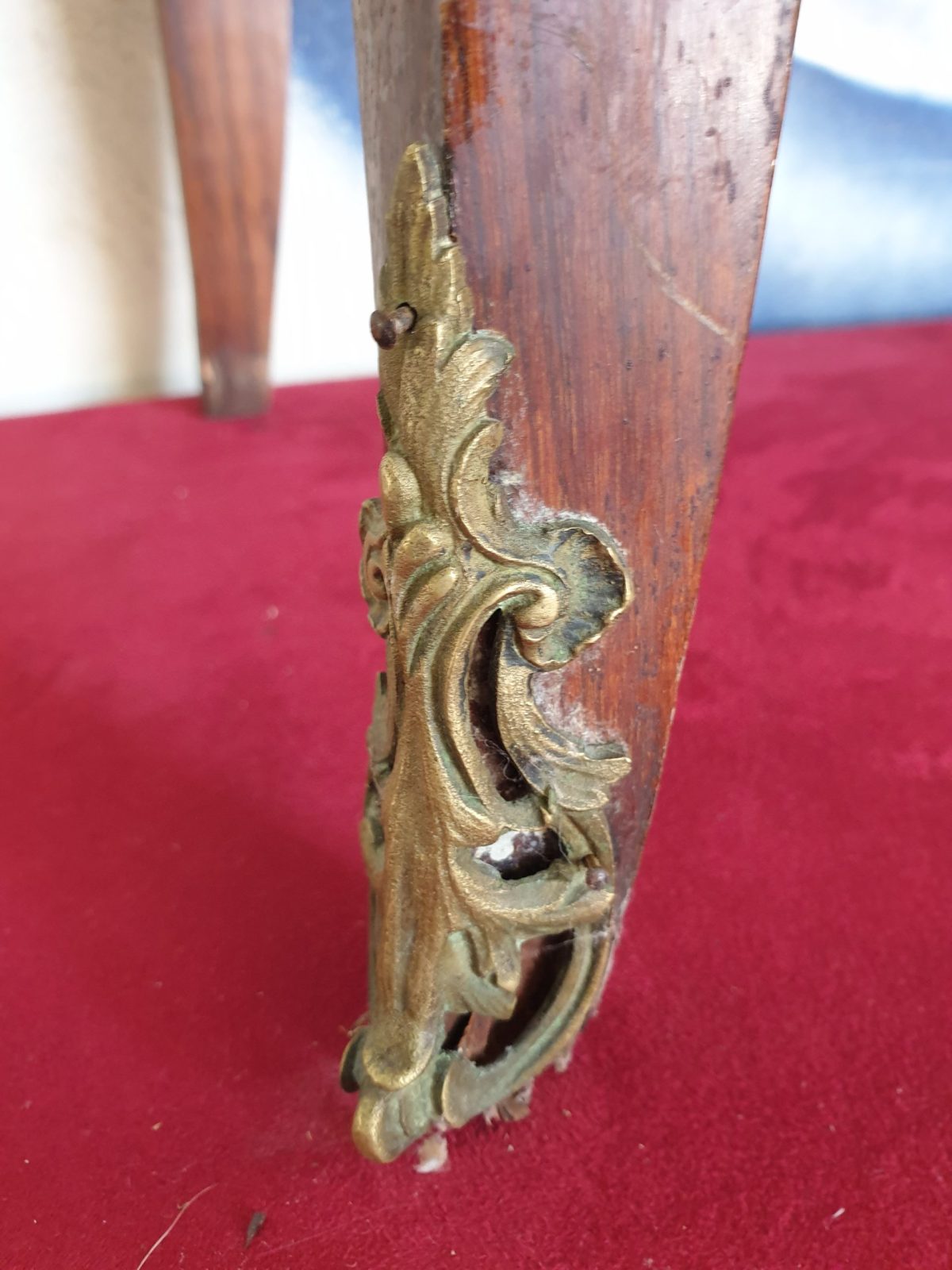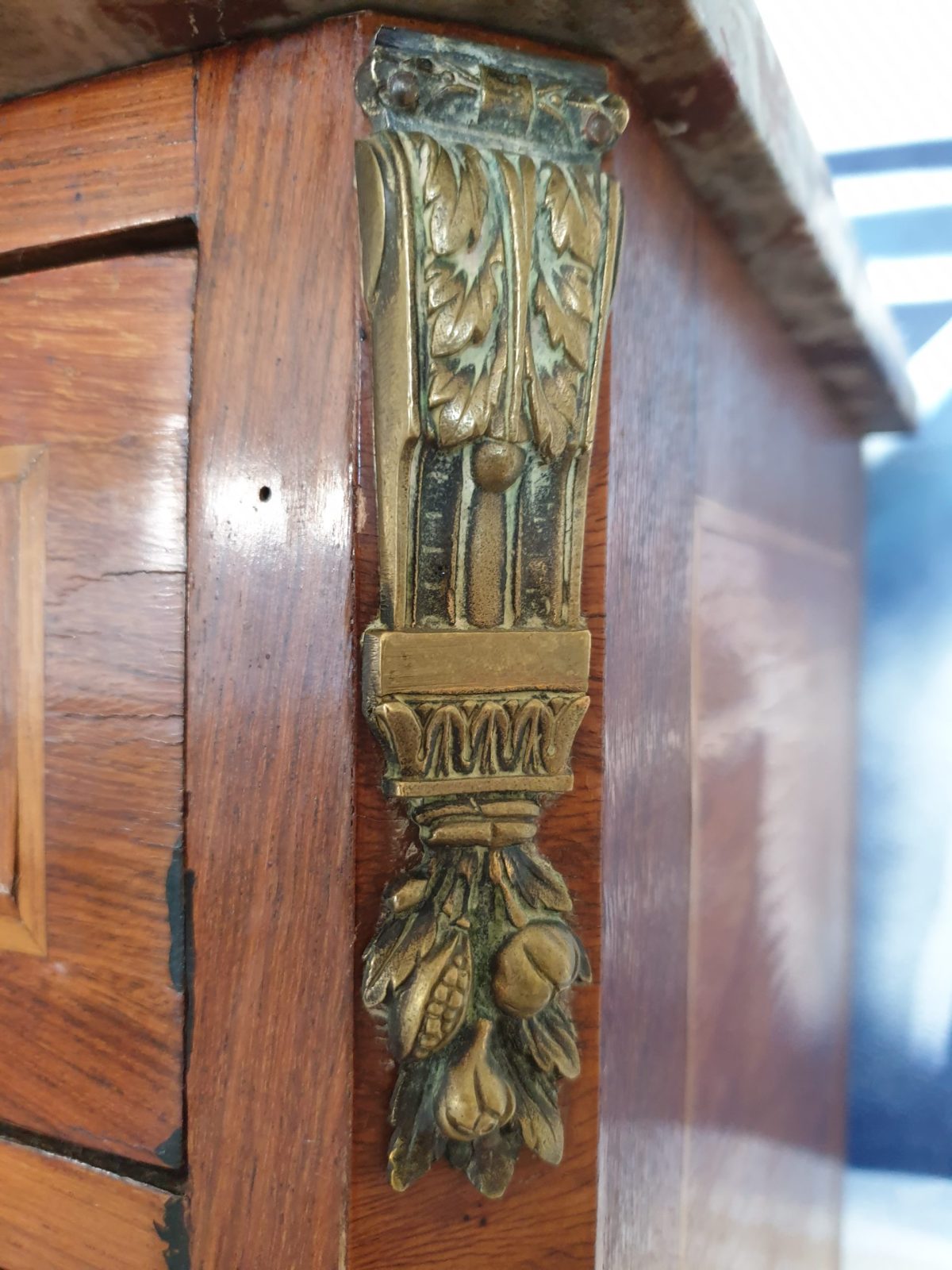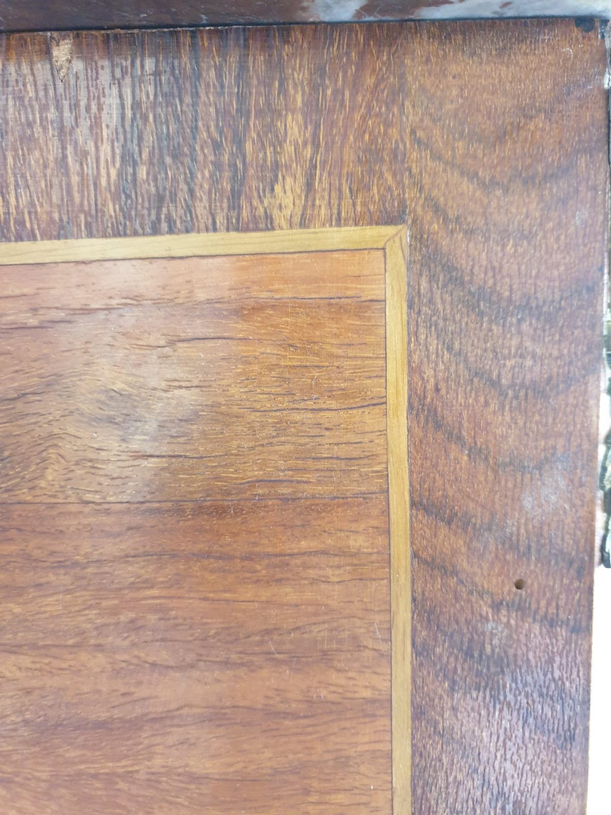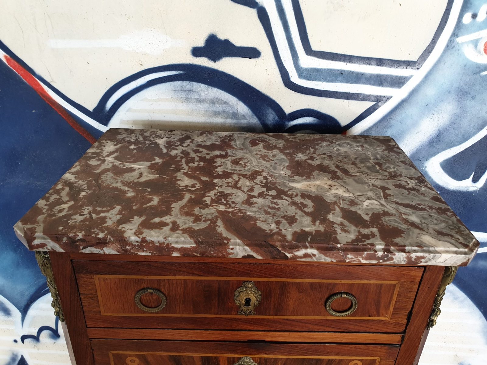Secrétaire à abatant style Louis XVI, à décor floral, placage bois de rose, 6 tiroirs, dessus marbre, à restaurer, H130 x L55.5 x P33.5