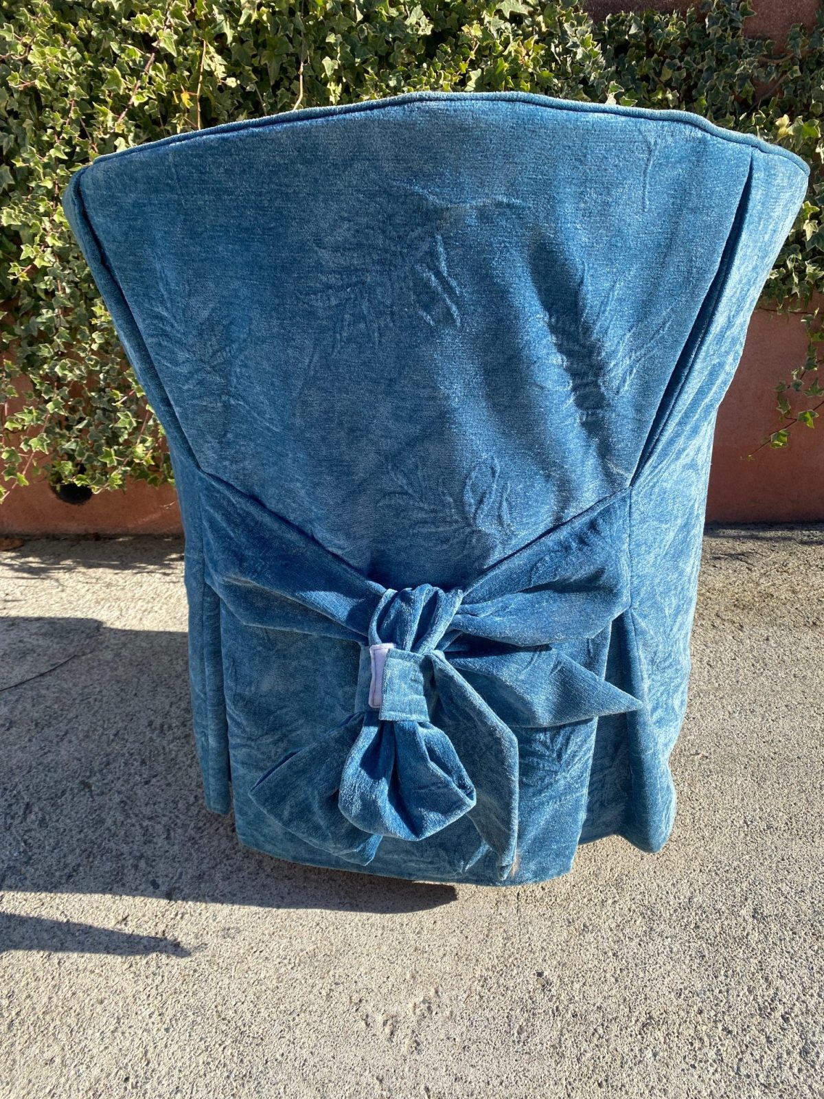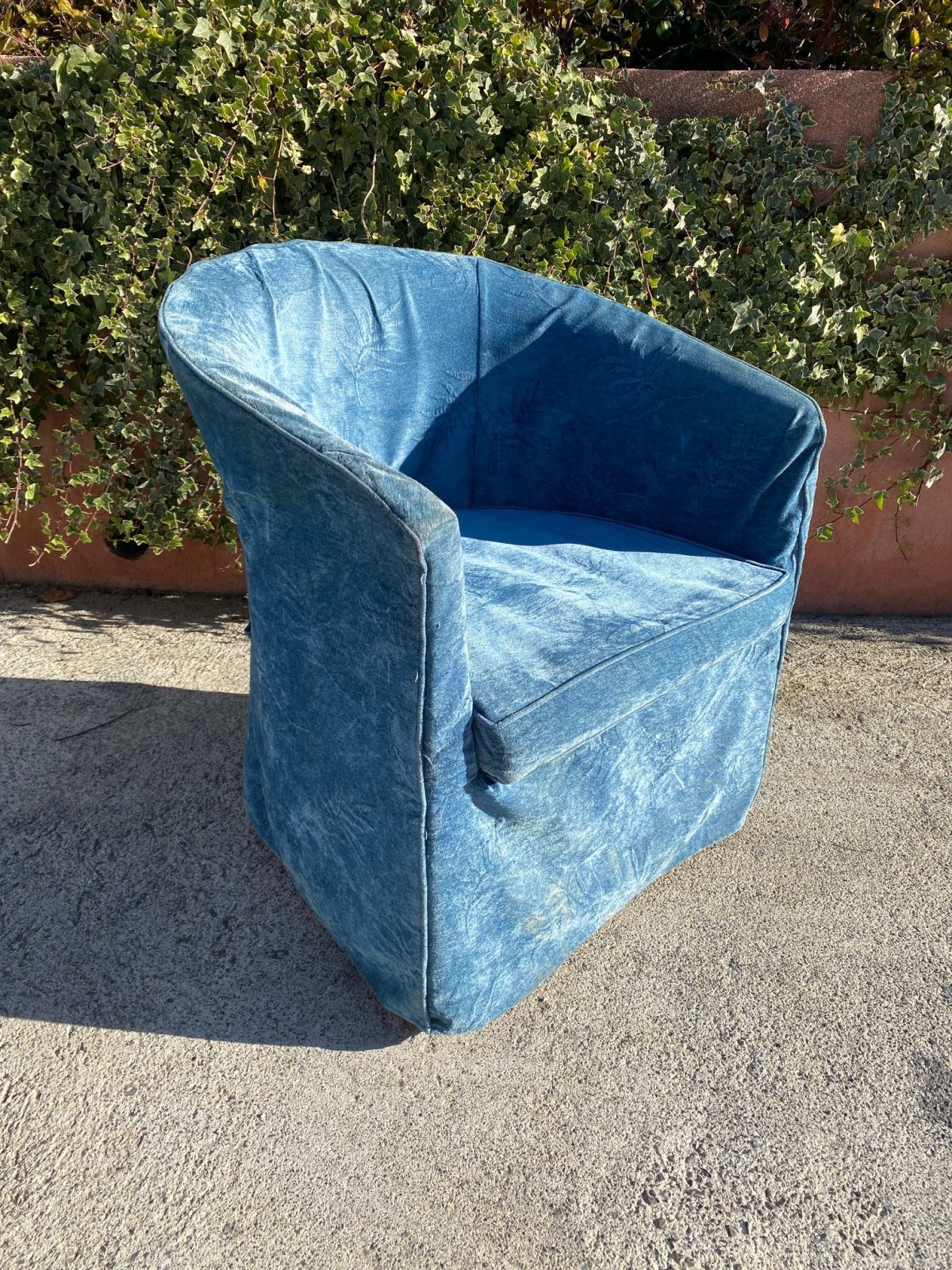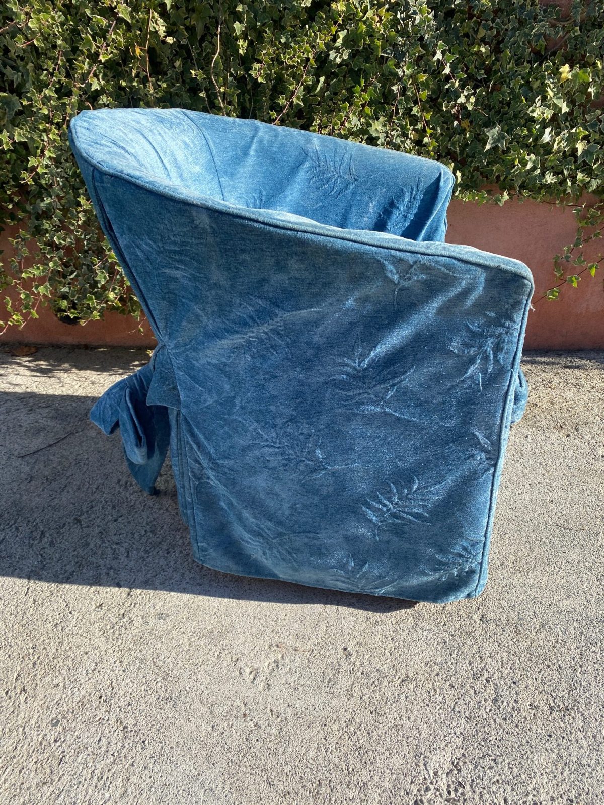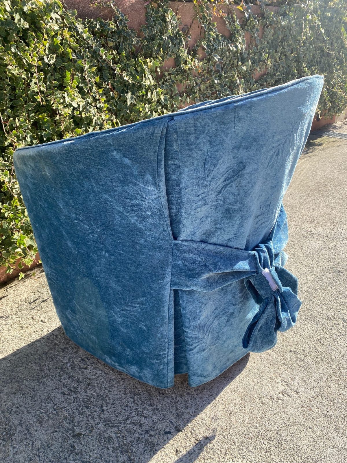 Fauteuil en mousse recouvert d’une housse en velours turquoise, H76 x L63 x P50, H assise 43