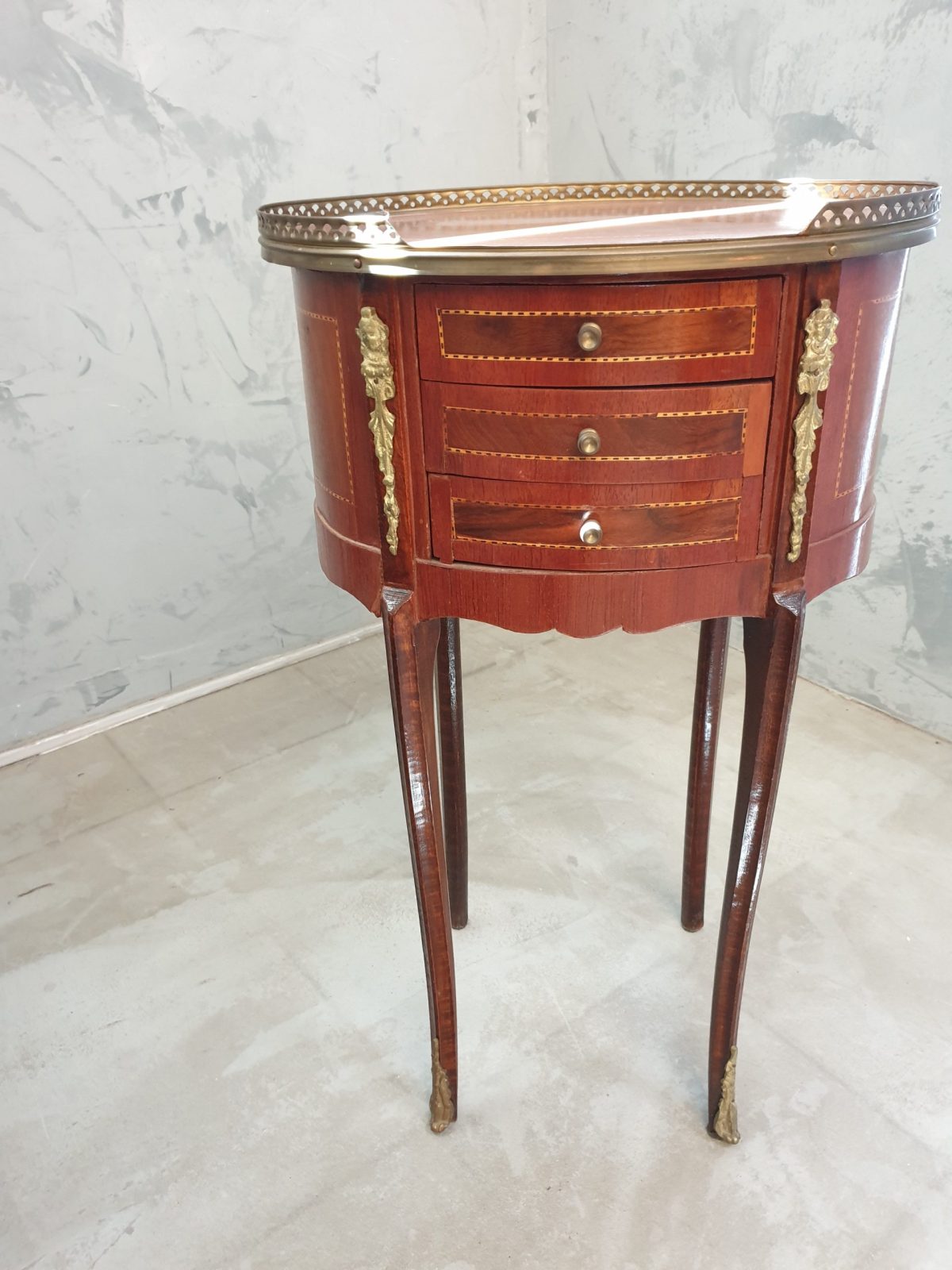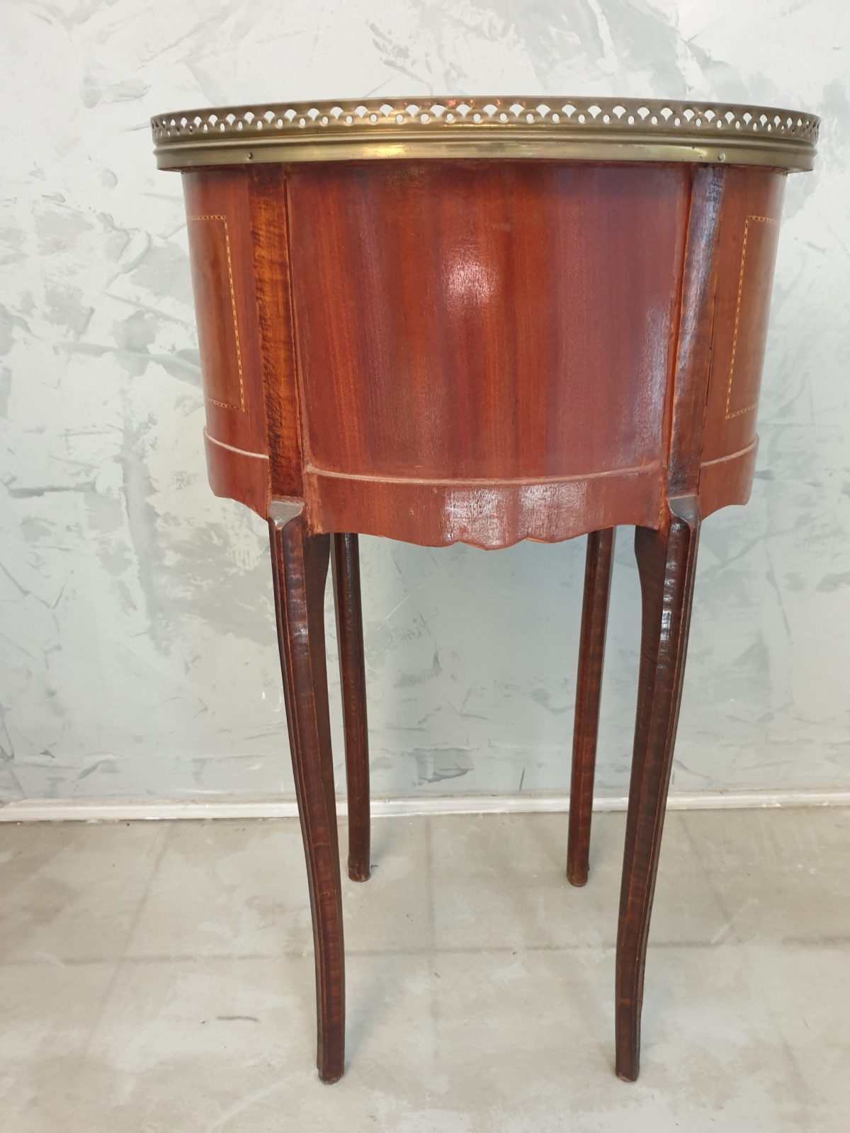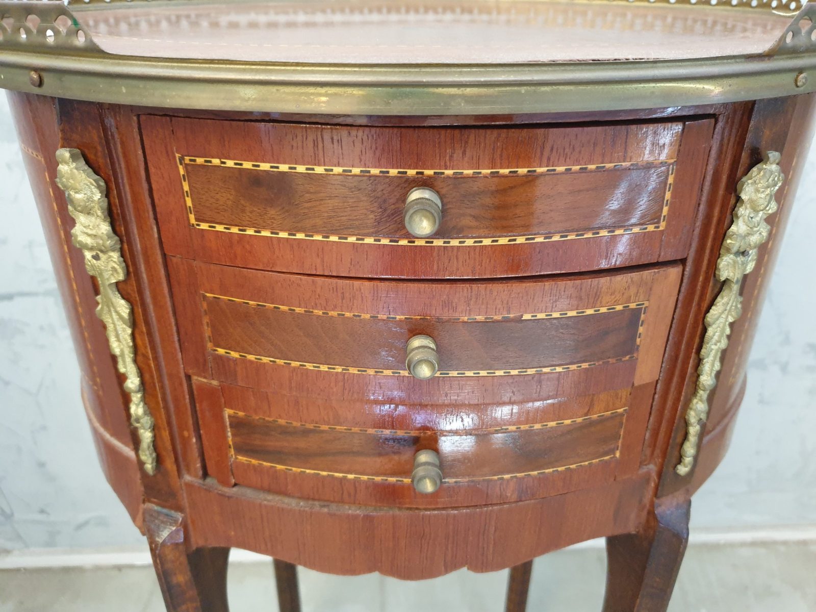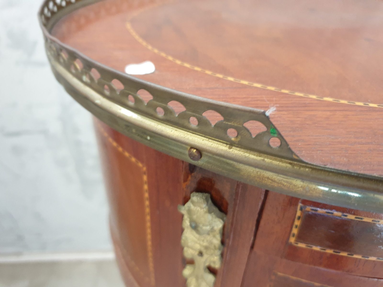 Guéridon marqueté, galerie laiton