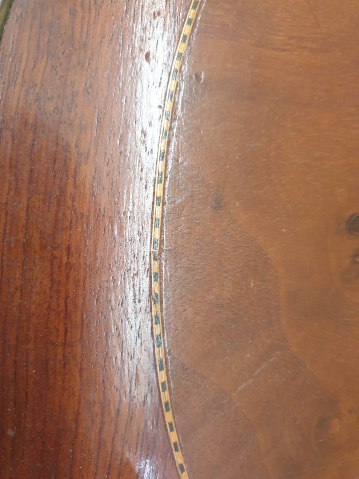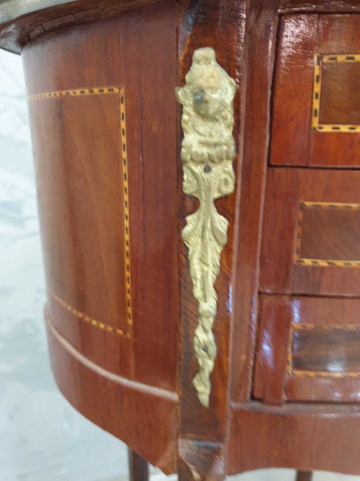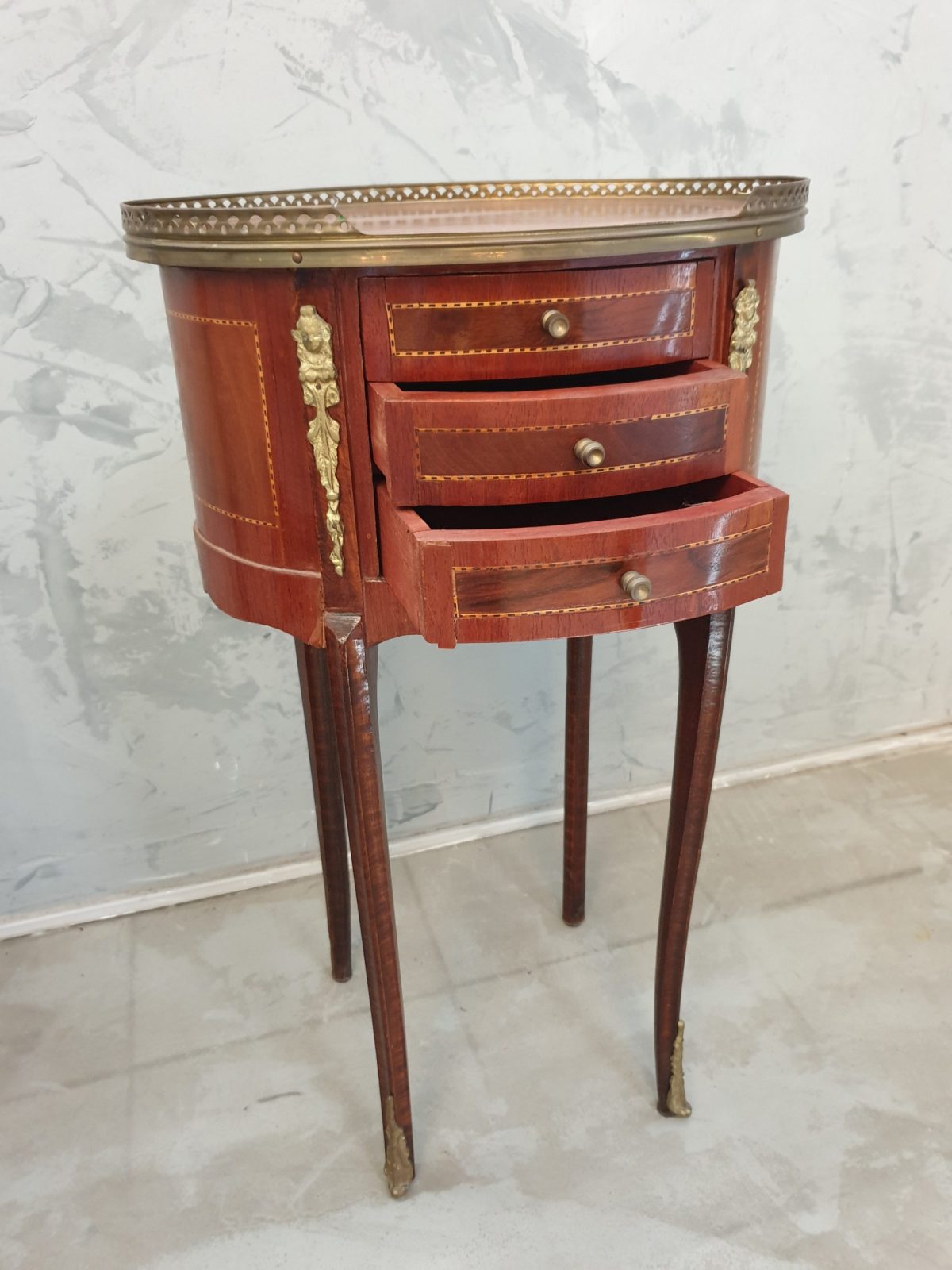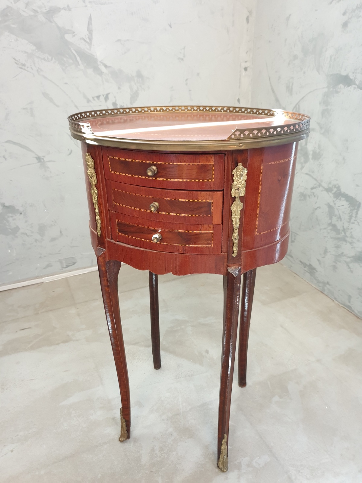 Guéridon marqueté, galerie laiton