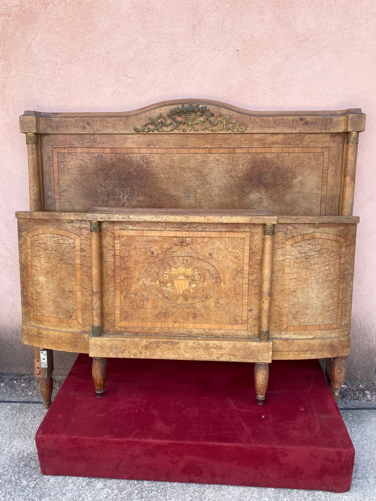 Lit corbeille en loupe dorme, H145 x L146, pied H84