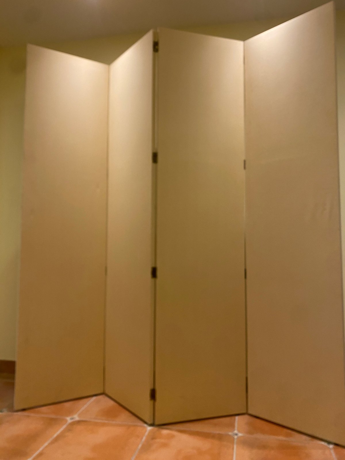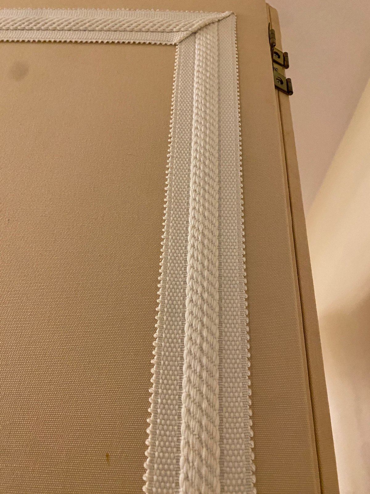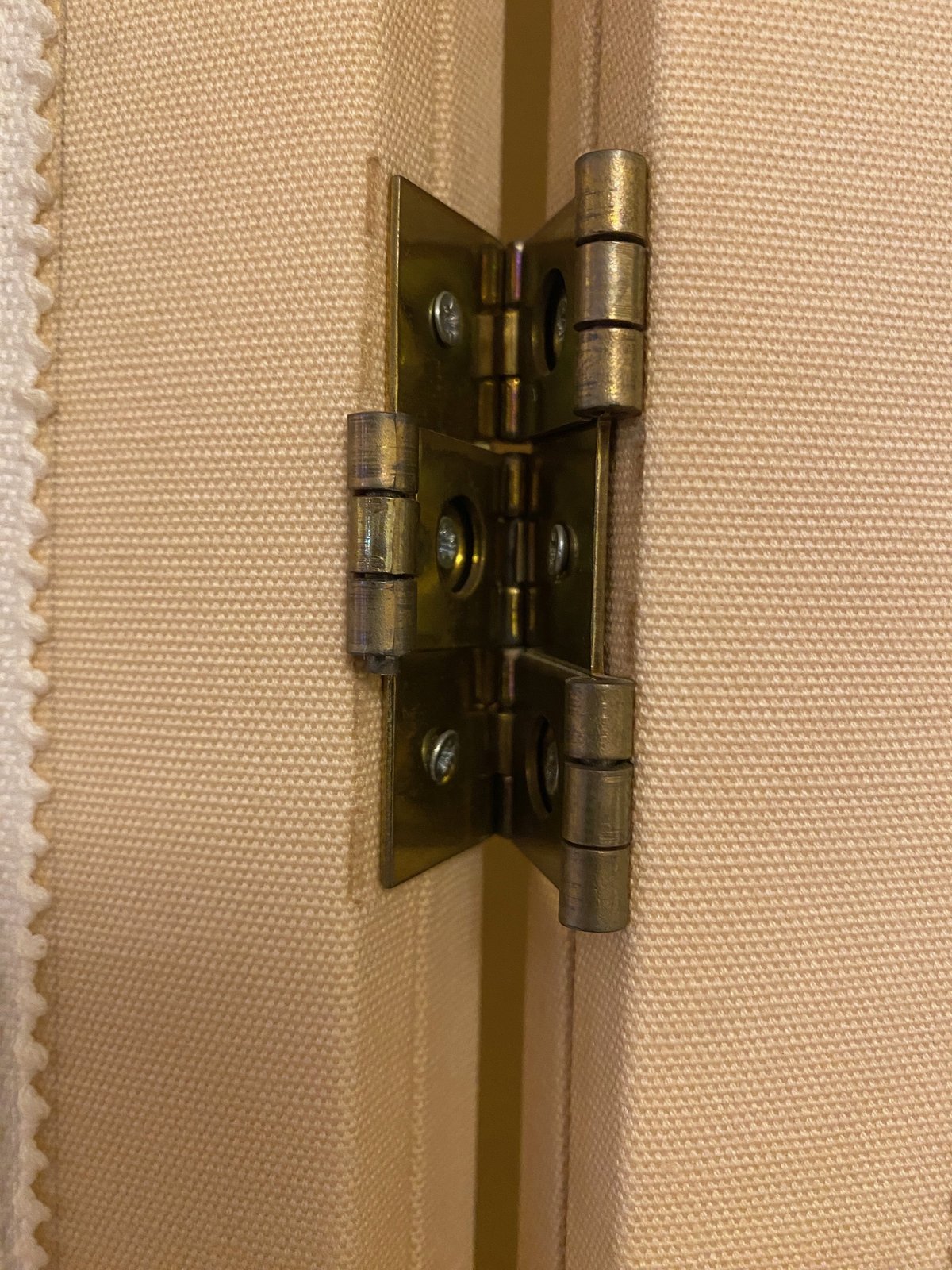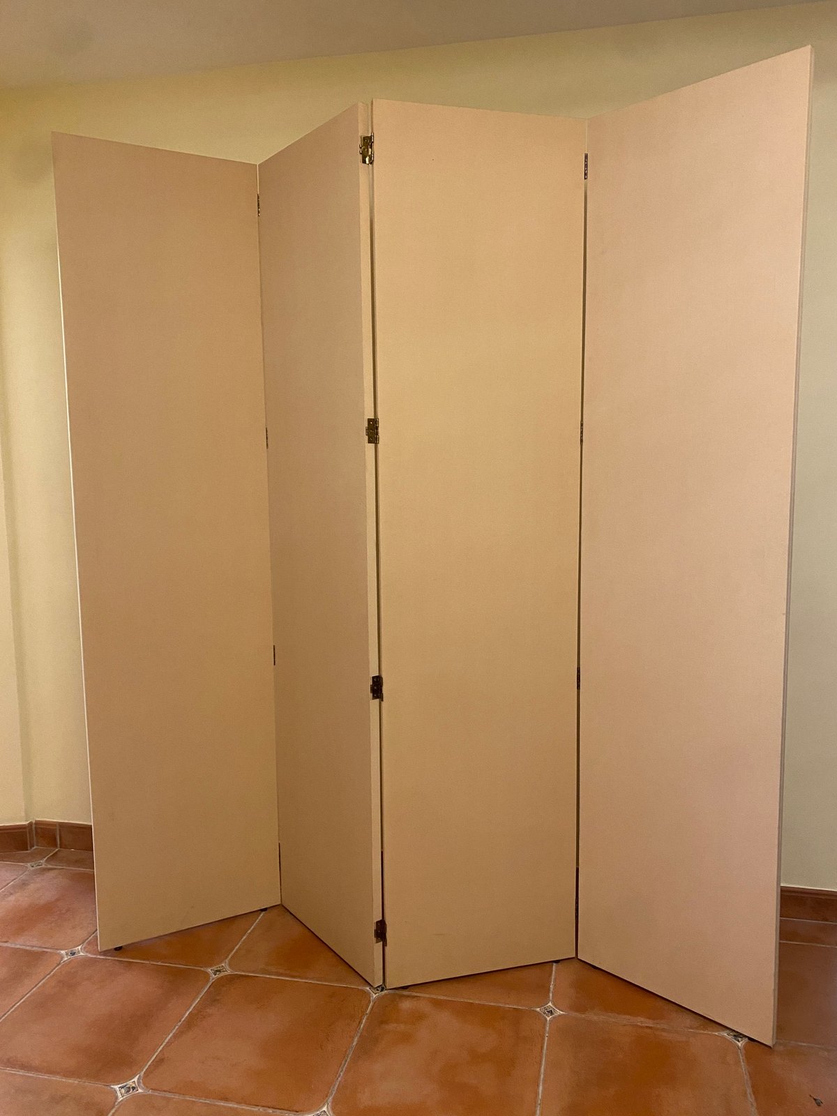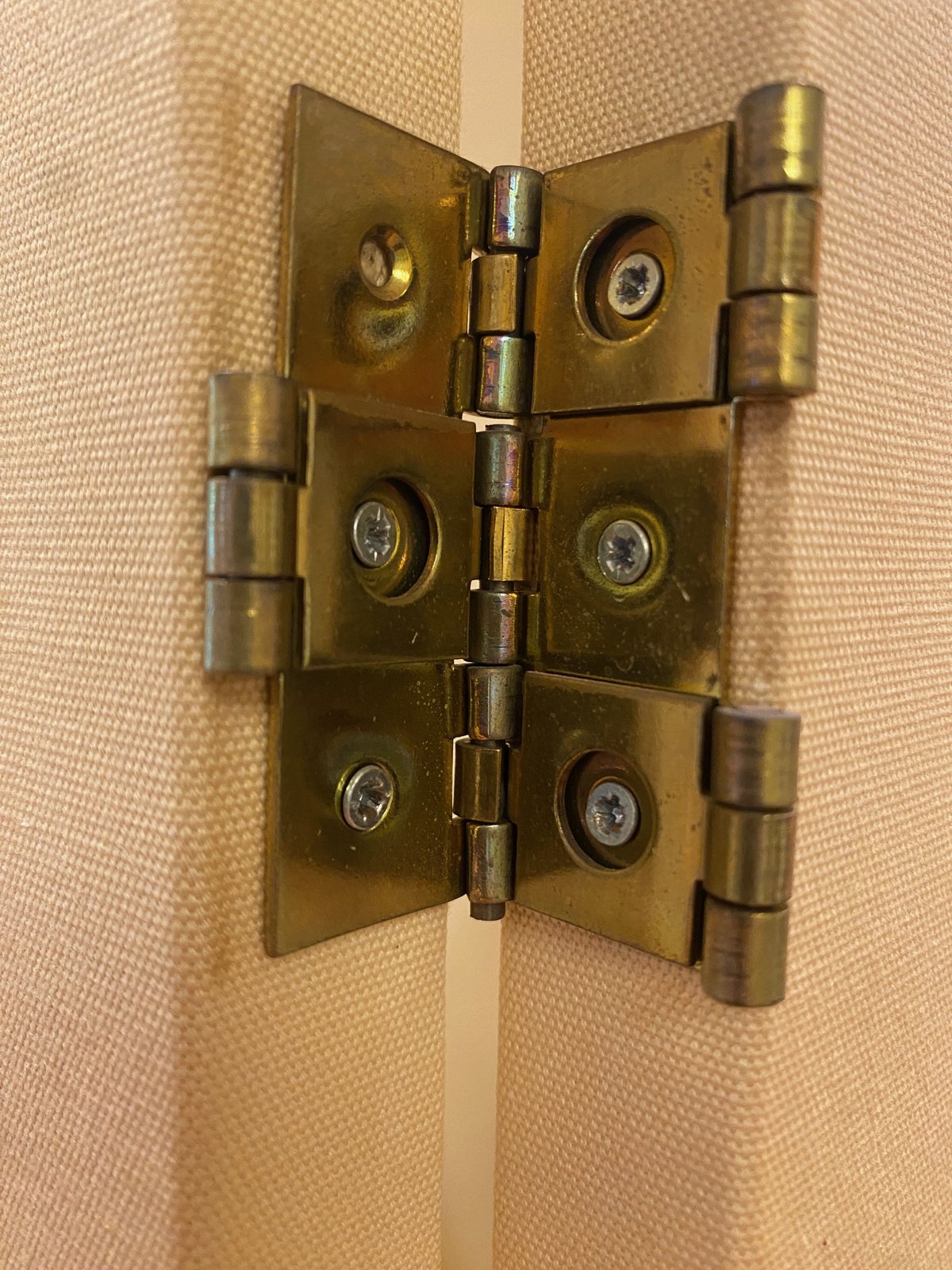 / Paravent de 4 vantaux tapissier tissus beige galonnés