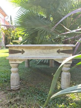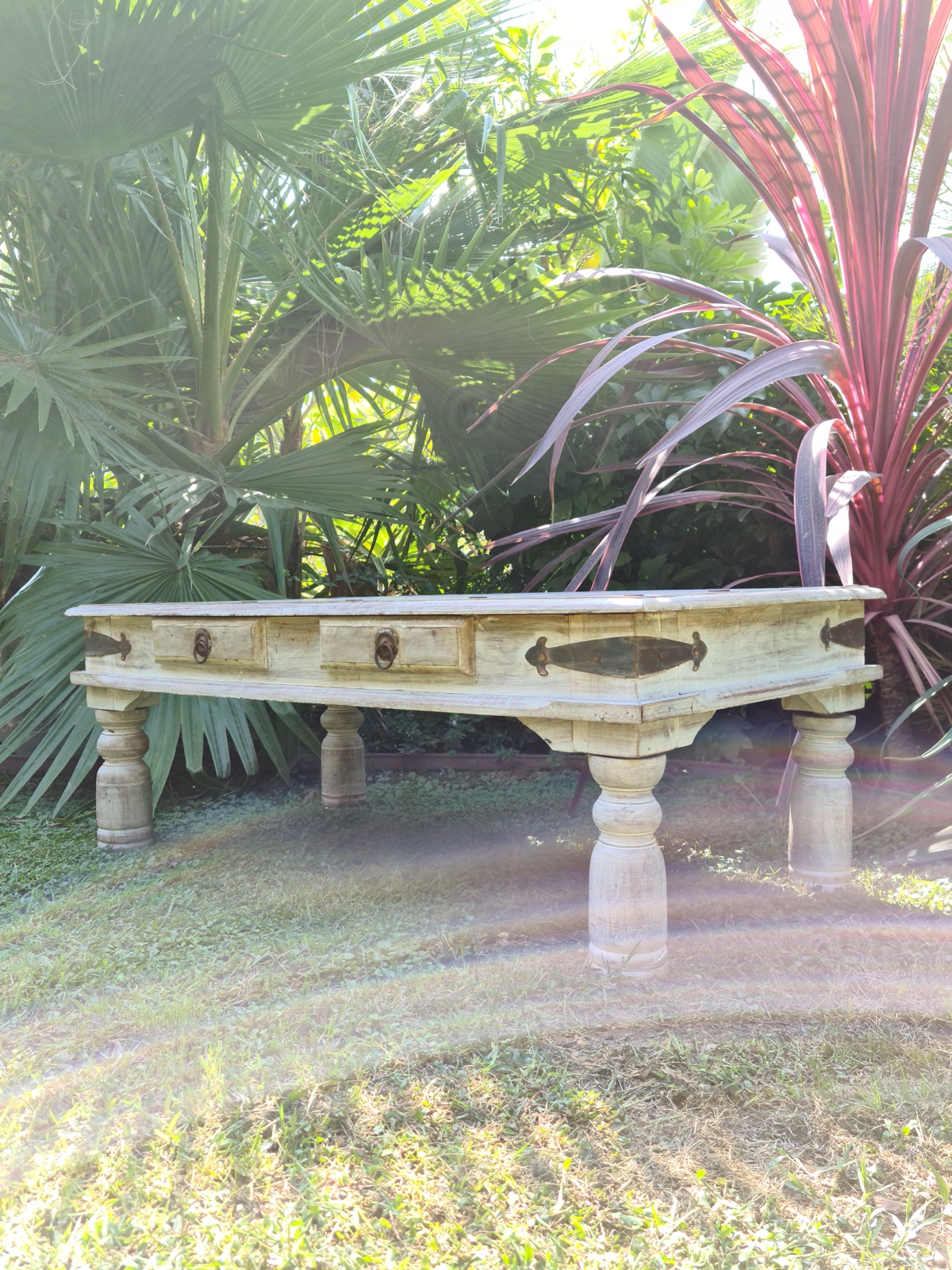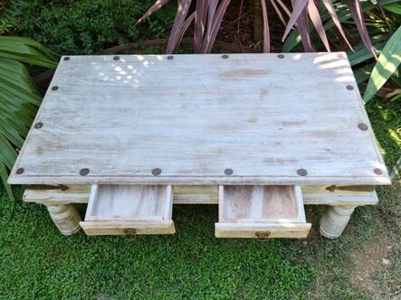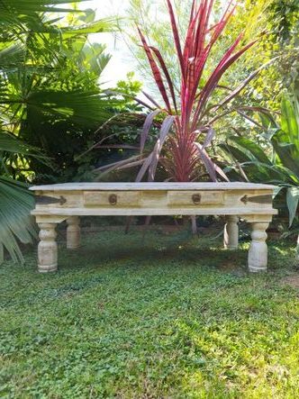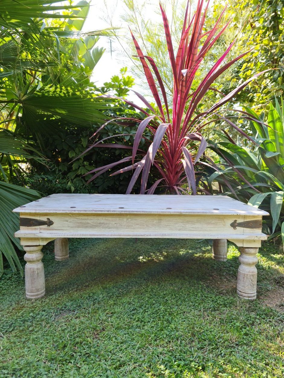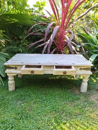 Table basse Indienne à deux tiroirs, bois exotique