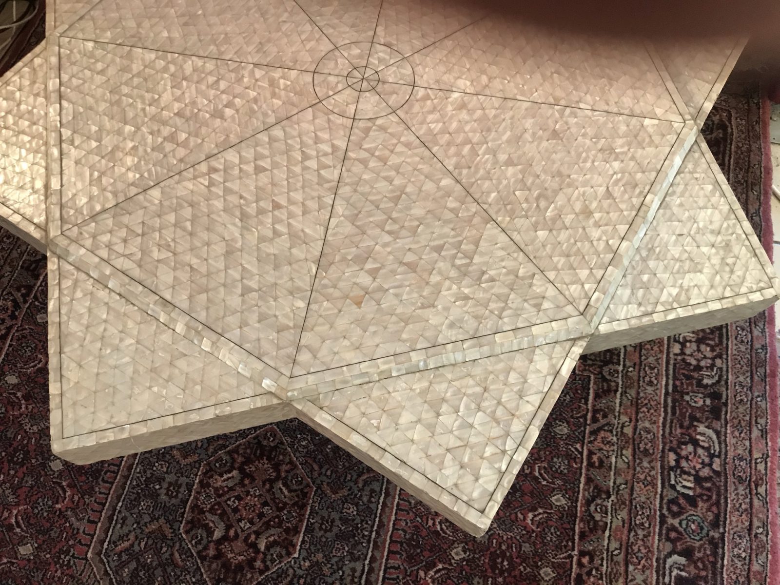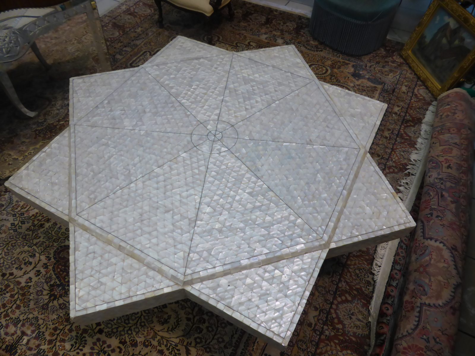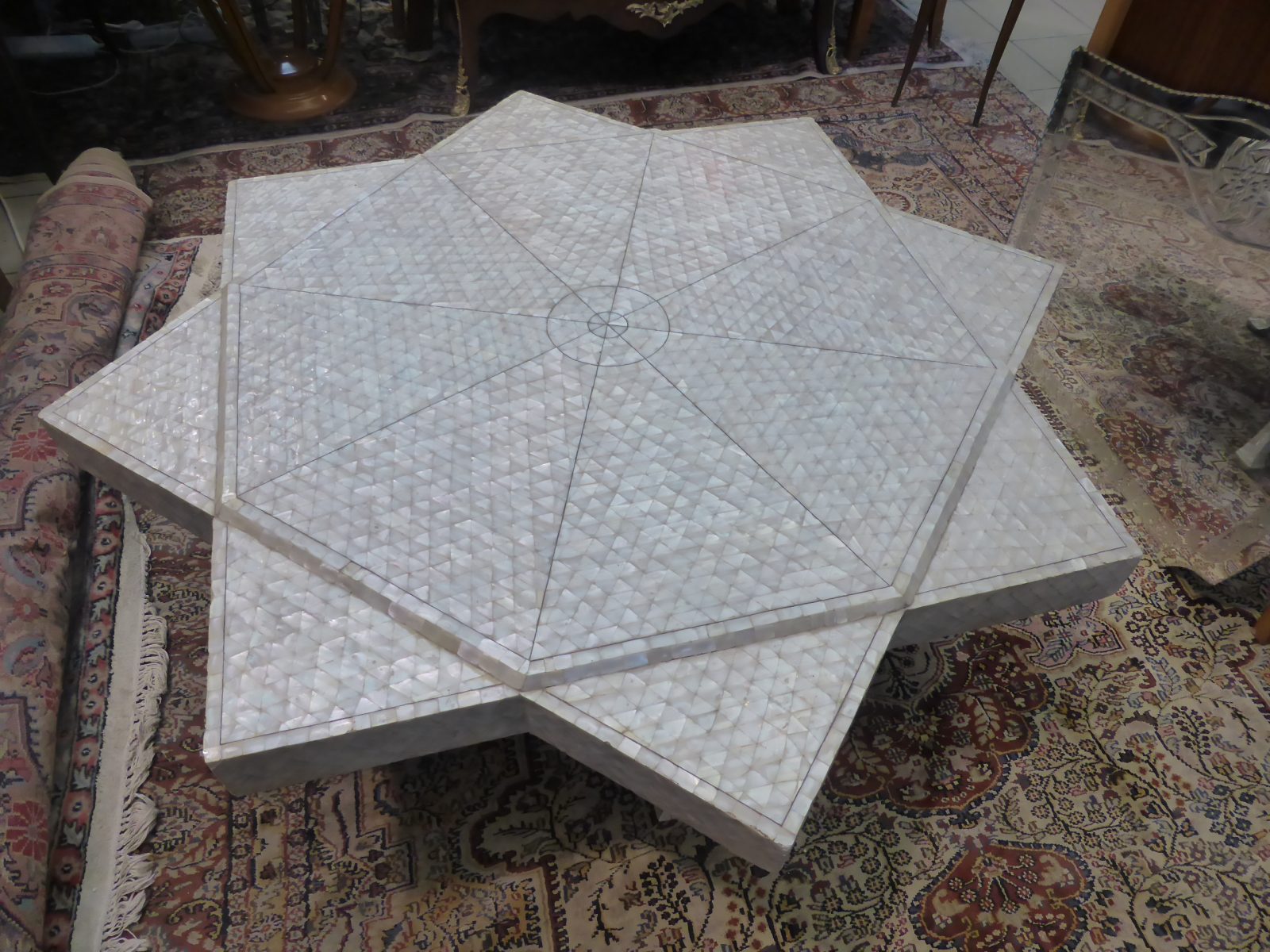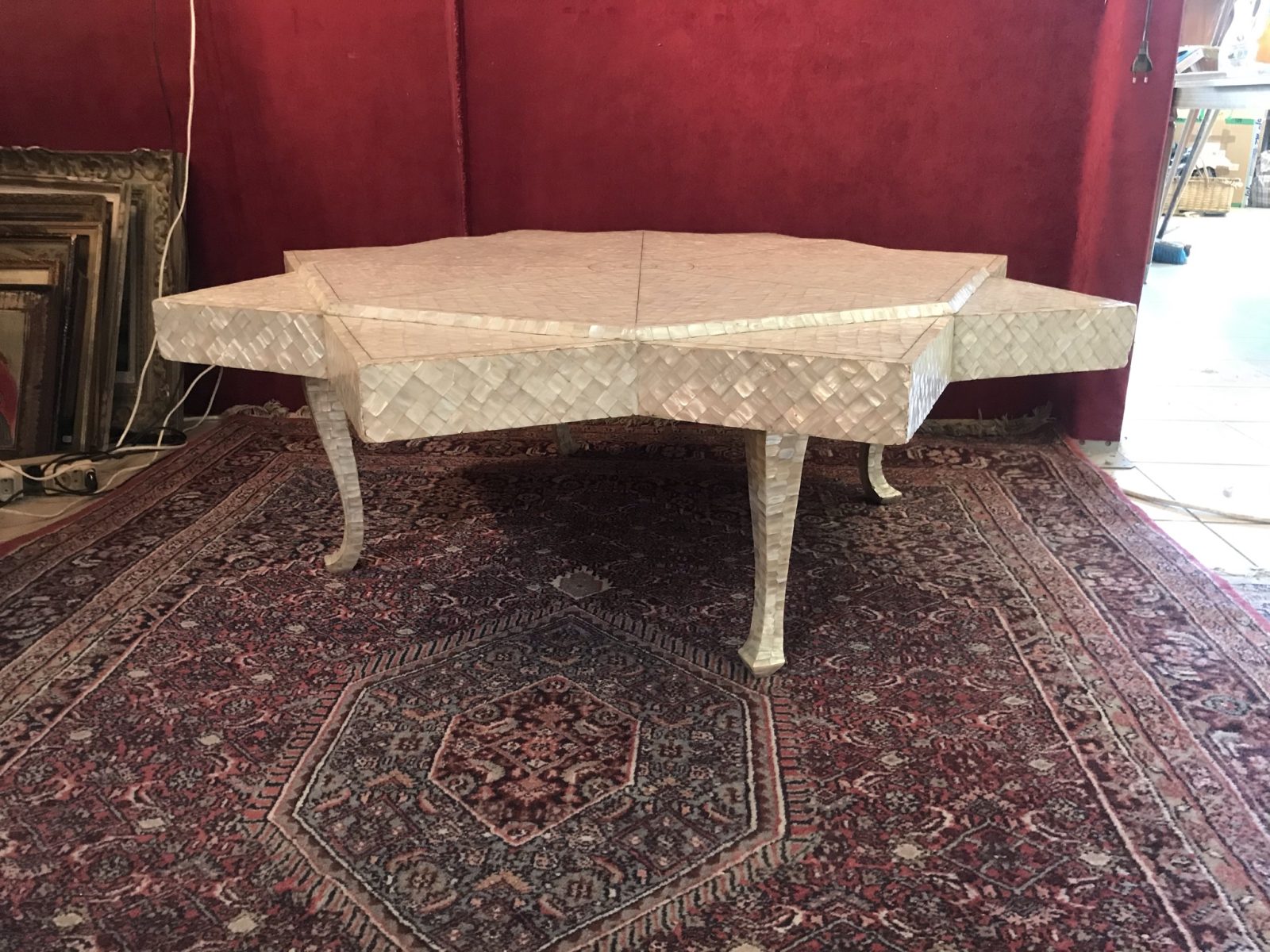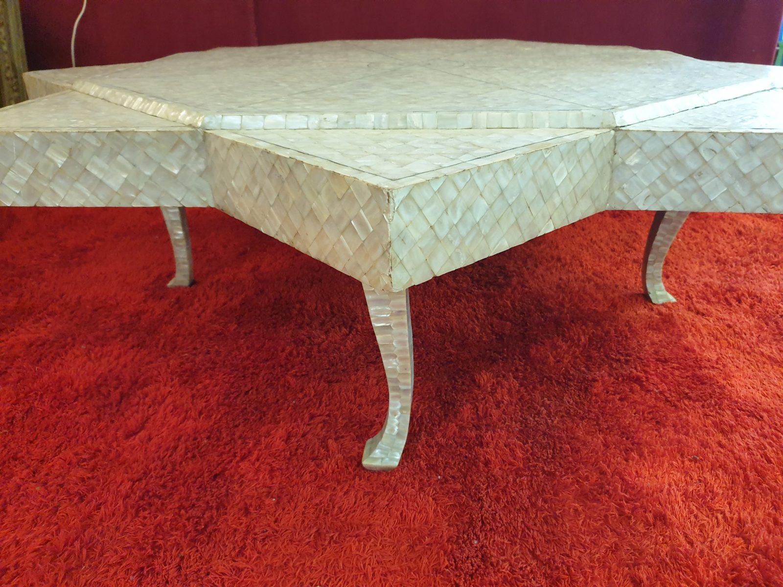 Table d’inspiration orientale à 8 branches en nacre blanche incrustée,