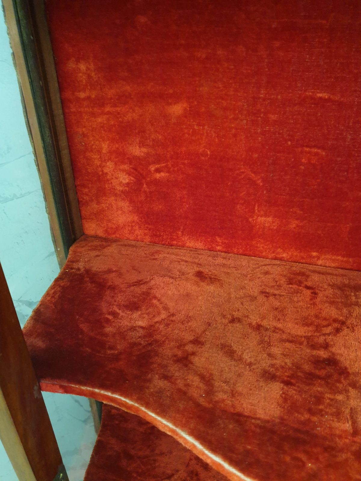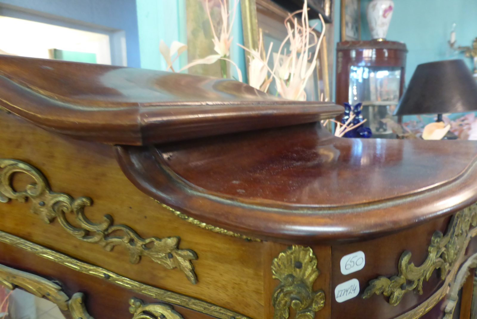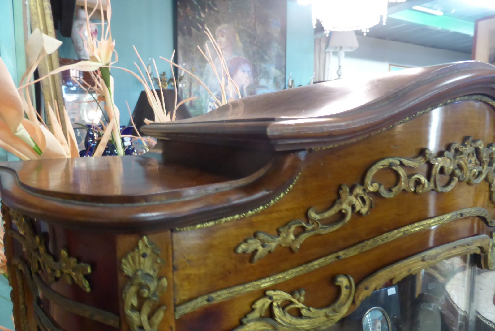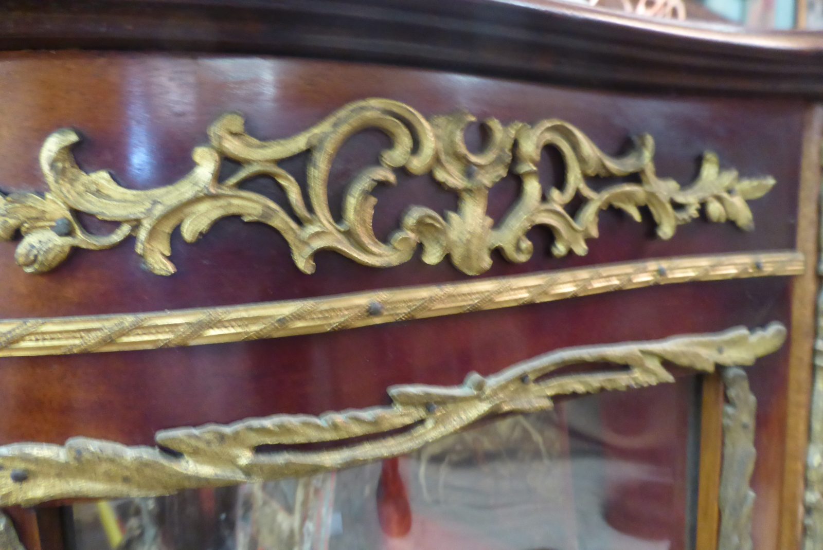 Vitrine de style Napoléon III bombée, à vitre galbée, placage acajou et décors de bronze, ouverture de la porte par la droite, clés fournis H146 x L68 x P33