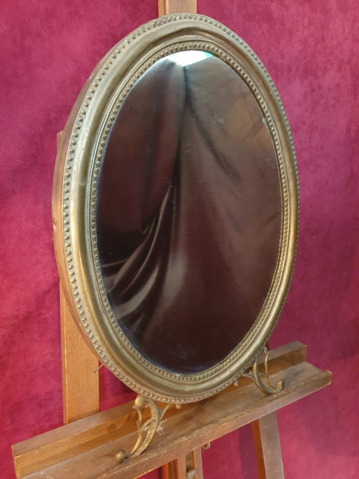 Miroir Ovale en laiton sur pieds, H52 x L36 x P3