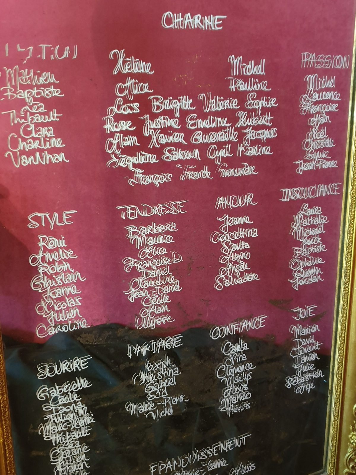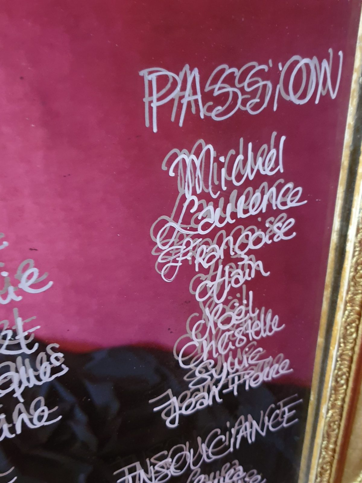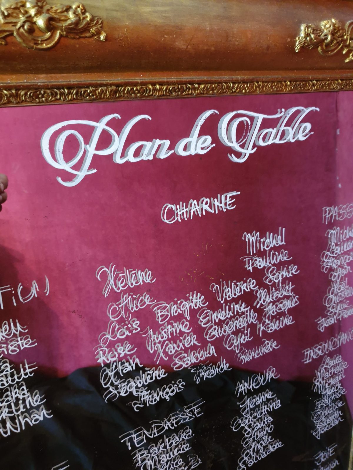 Miroir cadre en bois stuc sculpté doré, Plan de table