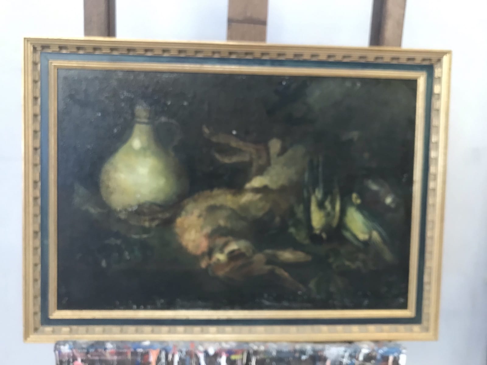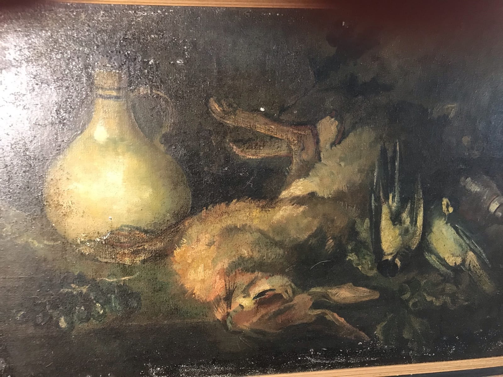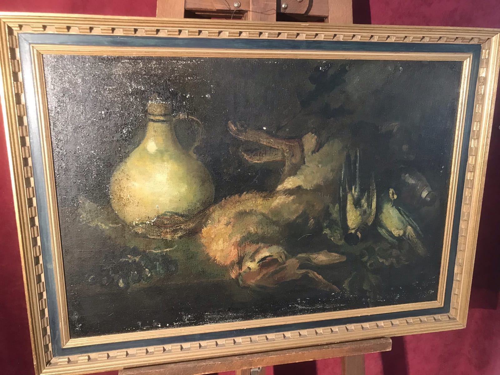 Tableau Collee sur panneau bois (Nature morte au Lapin) H45 x L68 – cadre H55 x L76.5