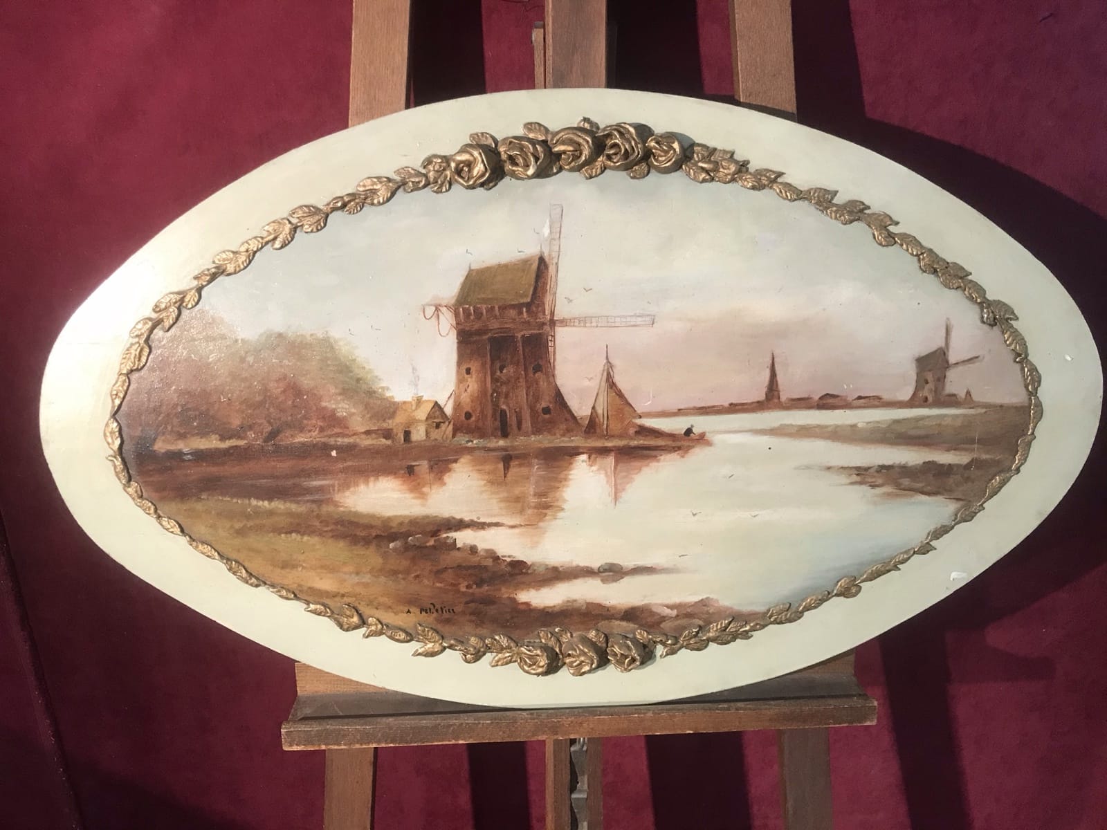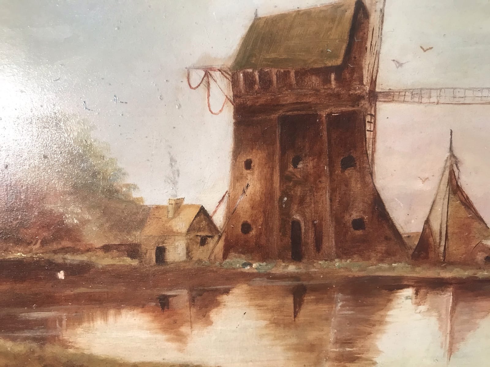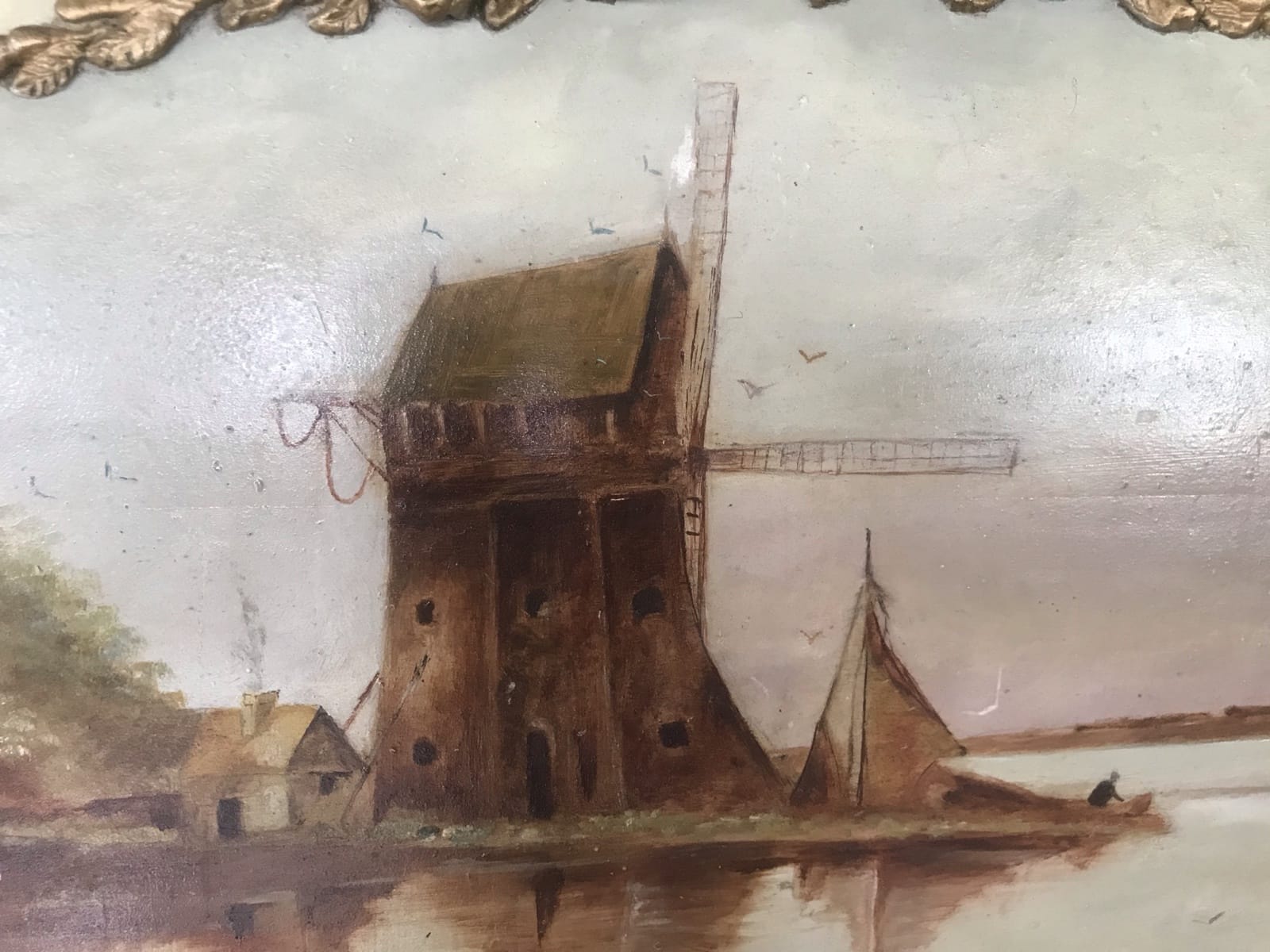 Tableau Huile sur bois – (Paysage avec Moulin) H48 x L80