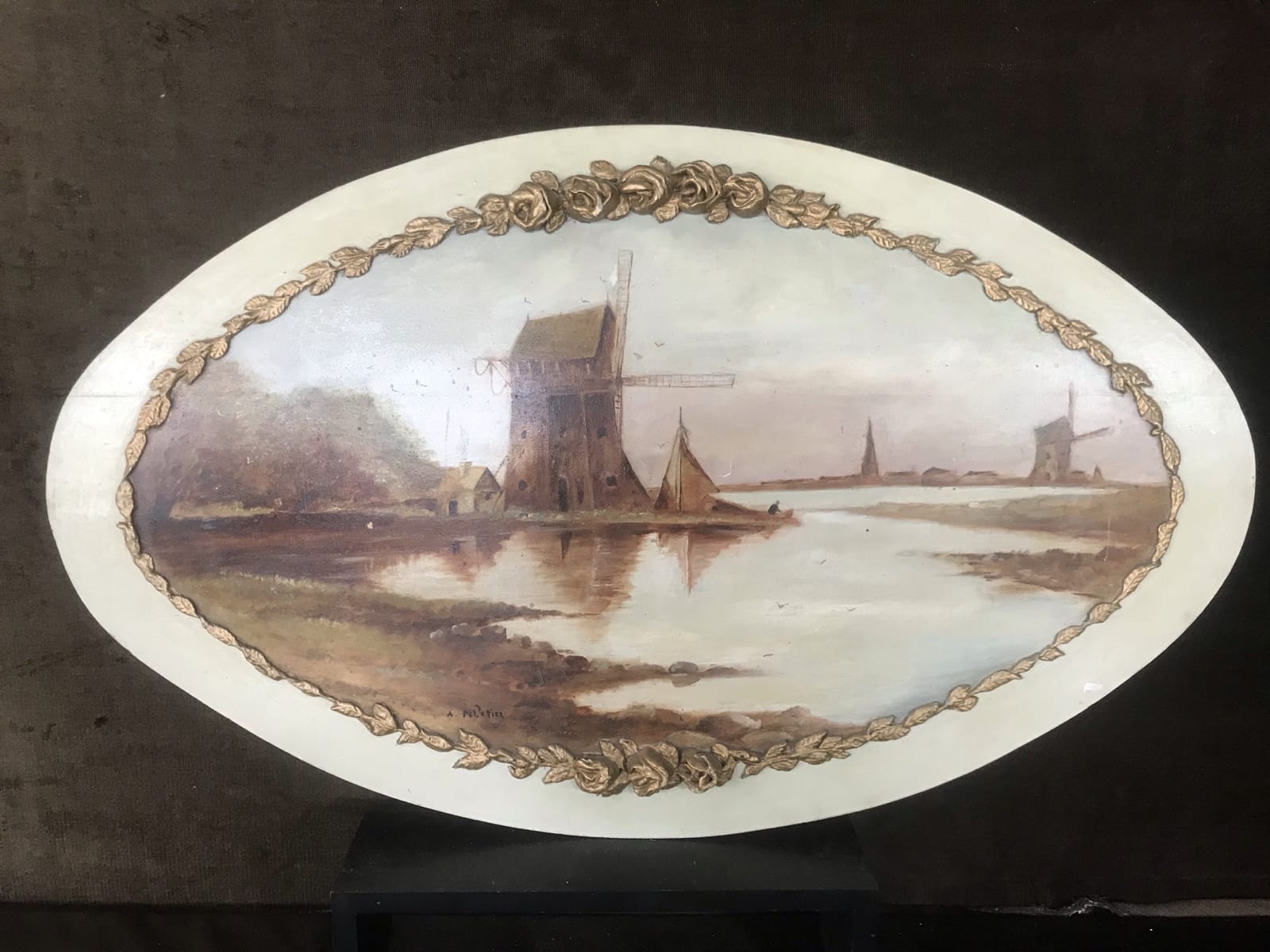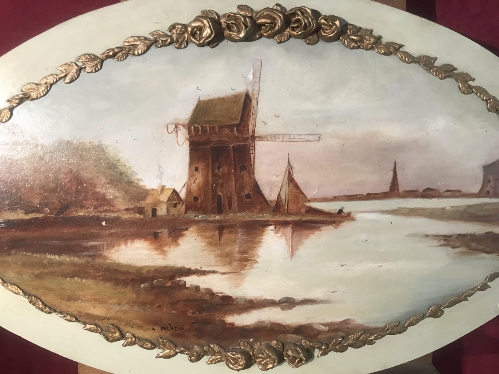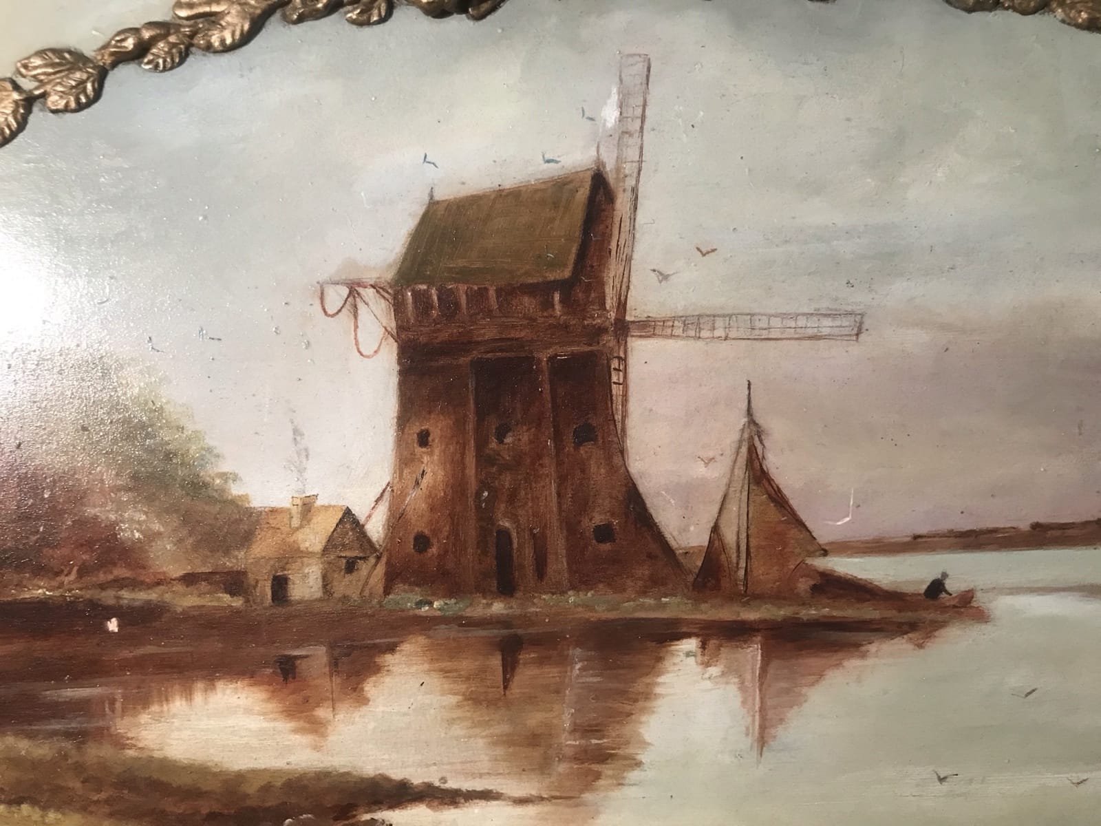 Tableau Huile sur bois – (Paysage avec Moulin) H48 x L80
