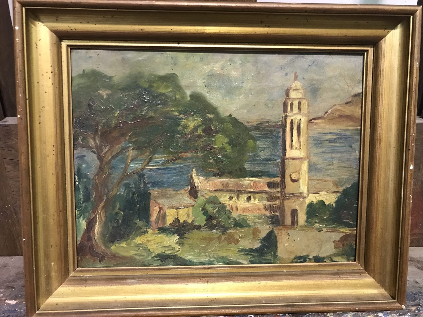 Tableau HsT – (Clocher) 19ème – H24.5 x L32.5 – cadre H31.5 x L39.5