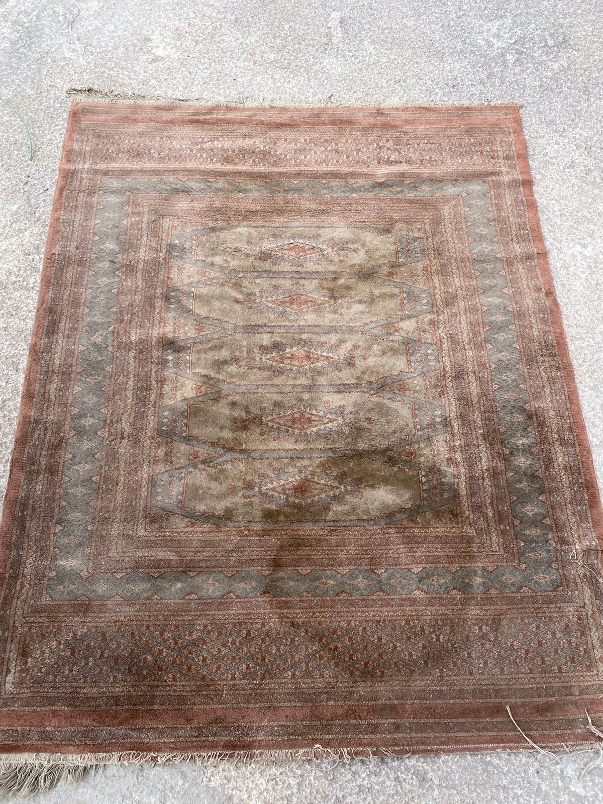 Tapis Amershan – laine; vieux rose et bleu a fleurs – machine