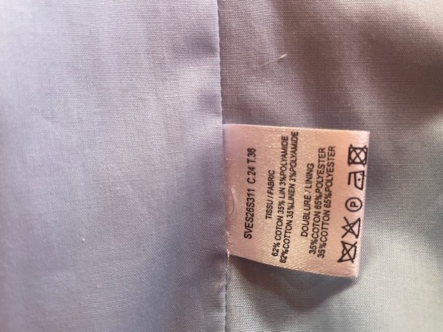 Veste Zapa taille 36, 62% coton, 35% lin, 3%polyamide
